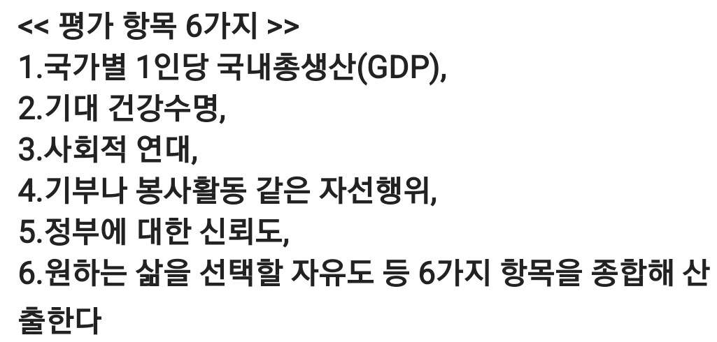 매년 행복 중위권에 머물고 있는 대한민국은 어떤가요? 이의제기할 우리만의 가치들은 무엇인지요? 있다면 제대로 반영되었을지요?