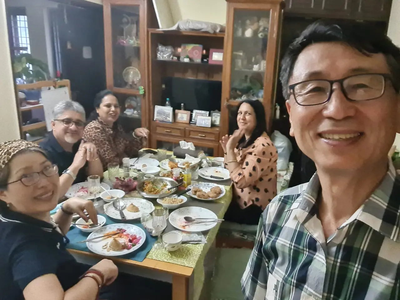 한국음식은 난생 처음이라는 로미 언니 내외는 형부가 자그마한 분이 눈이 반짝거리는 것이 아주 귀티가 나면서 귀여웠다. 모두들 몇년전 찬디가르의 결혼식 이야기를 하면서 즐거운 대화를 나누었는데 올 9월에 손주를 볼 것이라고 하여 축하 많이 해주었다. 아... 지나간 코로나 세월이여!