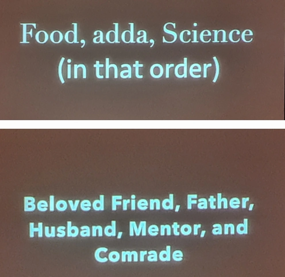 고인이 사랑한 것은 Food, Adda, Science의 순이라면서 우스개소리를 하시던데... ICGEB의 사모사를 광장히 좋아했다고 합니다. 만나면 언제나 식사하자고 사모사가 무척 맛있다고 권하곤 하셨답니다. 여러분이 그 말씀을 하시더라고요... Adda라면 서로 토론하고 대화나누는 것인데요, 평소 같은 길을 걷는 과학자들과 만나면 토론하기를 즐기고 나중에 그분의 코멘트를 들어야 끝이 났다고 하니... 박사과정 학생들에게는 친절히 가이드해 주고 해외 유수 대학에도 추천을 많이 해 주셨다고 합니다.
