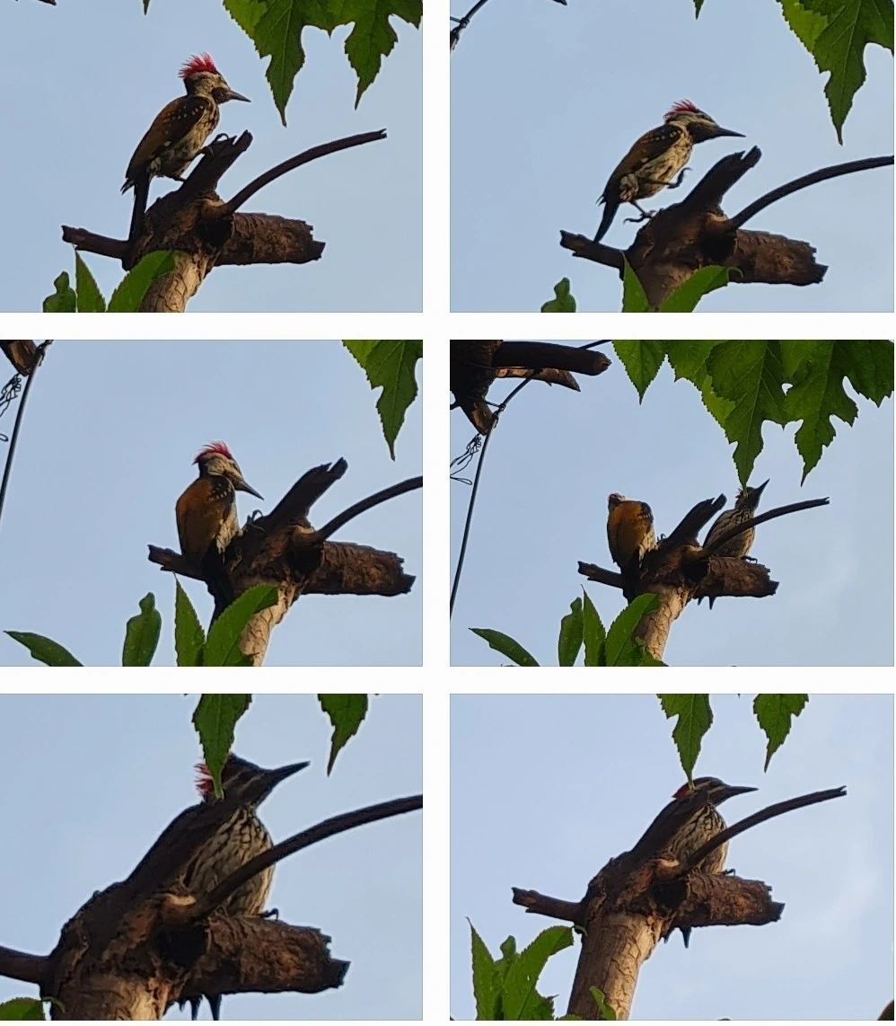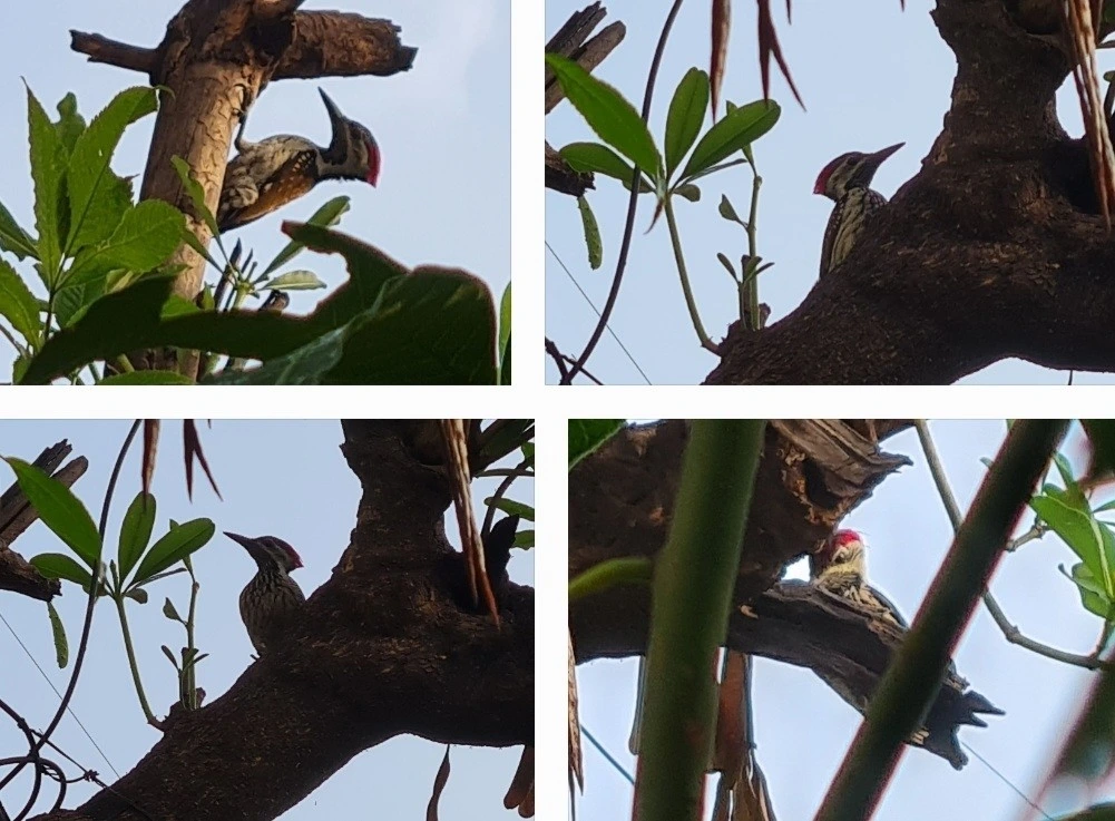 어제는 새벽에 걷기를 안가고 아침 요가를 했습니다. 딱딱 거리는 생경한 소리에 남편이 나가보니 바로 집앞 나무에 딱따구리 한쌍이 열심히 나무파기를 하고 있어요. 남편이 사진을 찍는데도 상관않고 정신없이 부리를 찍어내리고 있습니다. 확대해보니 눈이 사팔이네요? 웃습시다!
