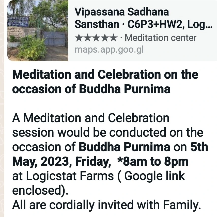 우리나라의 어린이날, 5월 5일은 올해 인도의 부처님 오신 날이었습니다. 기념으로 부다 공원으로 피크닉가려고 하던 차에 지인으로부터 1일 명상센터프로그램을 받았습니다.