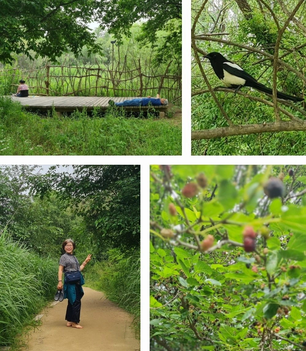 여의도 걷기, 부동산 순례및 맛집. 맨발 걷기등을 하다. 뽕나무가 많은데 인도의 오디에 비해서 사이즈가 반에서 1/3정도이다.