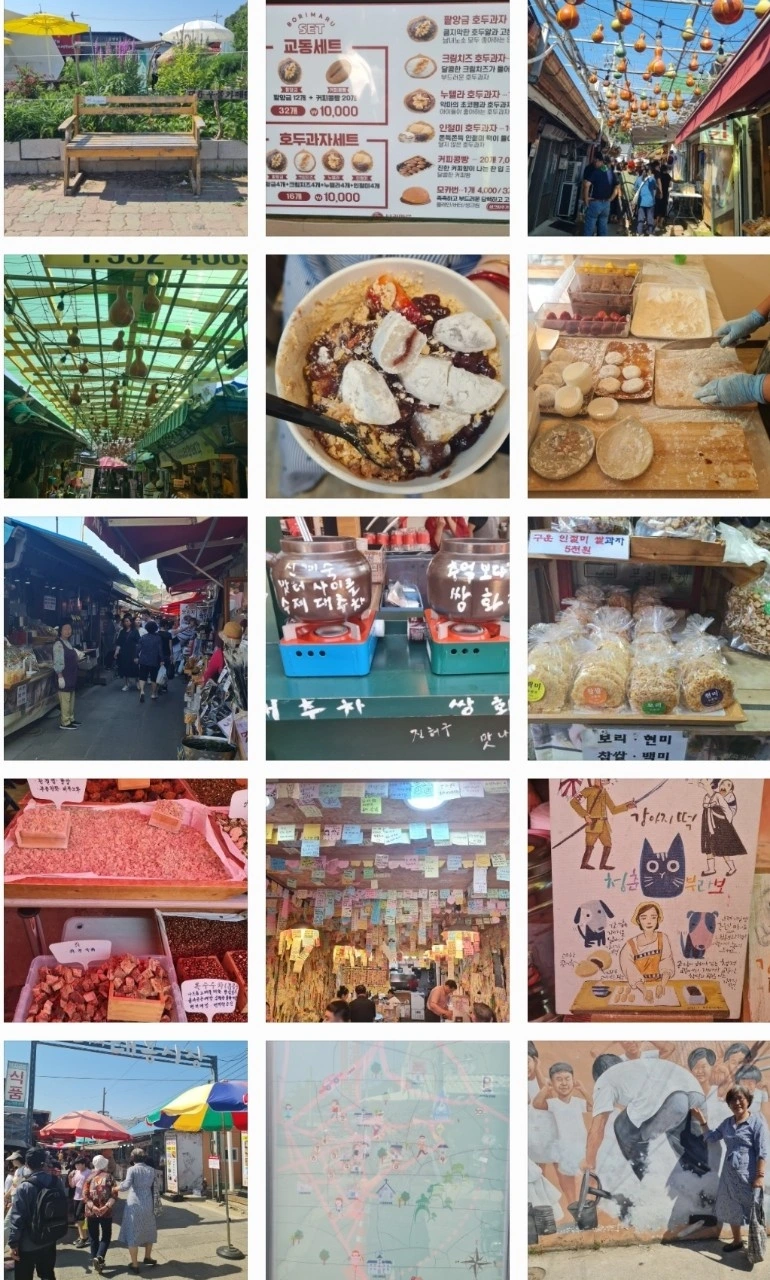 교동내 대룡시장. 과거 재래 시장모습을 재현했다. 토속 음식과 약재.약초들을 판다. 한마디로 신토불이 시장이다. 의외로 가족 단위의 사람들로 붐빈다. 무더운 날씨였지만, 구경 한번 잘했다. 그런데 좀 바가지 상혼도 보여서 주전부리 외에는 사질 않았다. 미숫가루 넣은 빙수도 영 아니올씨다... 어떻게 그런 것을 판매할수 있는지 맛이 영...얇게 저민 딸기 두 슬라이스넣고 작게 자른 떡 몇개. 웬만하면 외지에서 온 내 입맛에 합격할텐데... 아니올씨다!