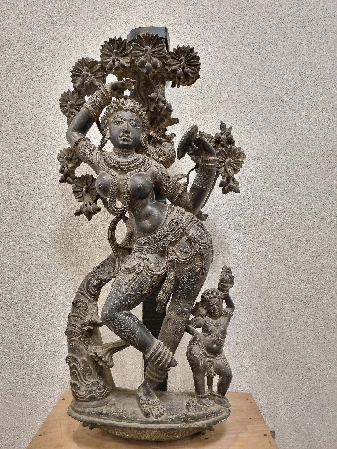 특히 춤추는 나트라자 상이 무척 정교하게 만들어져 있었는데 강가강의 신이 머리칼에 있고 구멍이 뚫린것은 강가강의 돌이며 머리 중앙의 해골은 장례터를 돌아다닌다는 의미라고 합니다... 뒷편의 한손에는 드럼과 다른 한손에는 불을 들고 있고 앞의 손은 무드라를 표현합니다. 시바신이 밟고 있는 난장이는 무지를 상징하며 전체적으로 전 우주적인 춤을 보여줍니다. 12세기 춀라시대의 작품입니다.