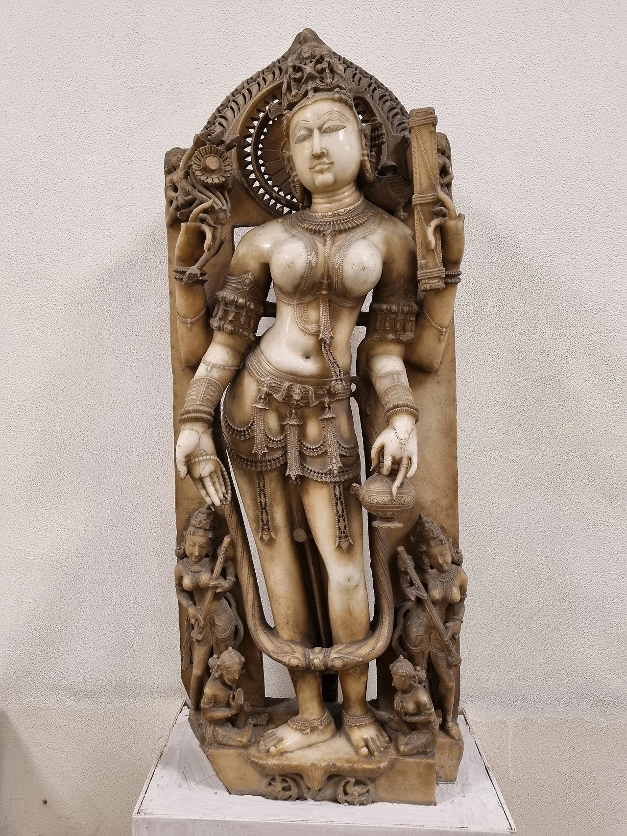 입구에 있는 대표적인 상들, 특히 사라스와티신은 공부와 예술의 신이라서 좋아한다.