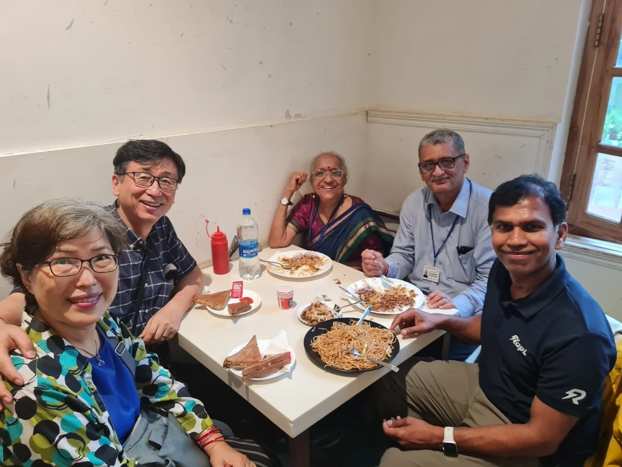 투어를 끝내고 비 맞으며 박물관내 조촐한 식당으로 자리를 옮겼습니다. 심플한 달 커레밥, 샌드위치 그리고 채소 한장 안들어간 비빔국수와 커피.차이를 차려놓고, 이들의 시공을 넘나드는 말의 향연에 경탄이 절로 나옵니다. 5명이서 점심 700루피의 간단한 스낵을 먹었습니다. 박물관내 식당 자체가 분식집 수준이라 비가 오질 않으면 사람들이 몰릴 이유가 없어 보입니다. 그렇지만, 장소가 문제인지요? 새로운 지인들과 한자리에 둘러앉아서 서로에 대해서 이야기나누면서 보낸 유익하고 풍족한 시간이었습니다.