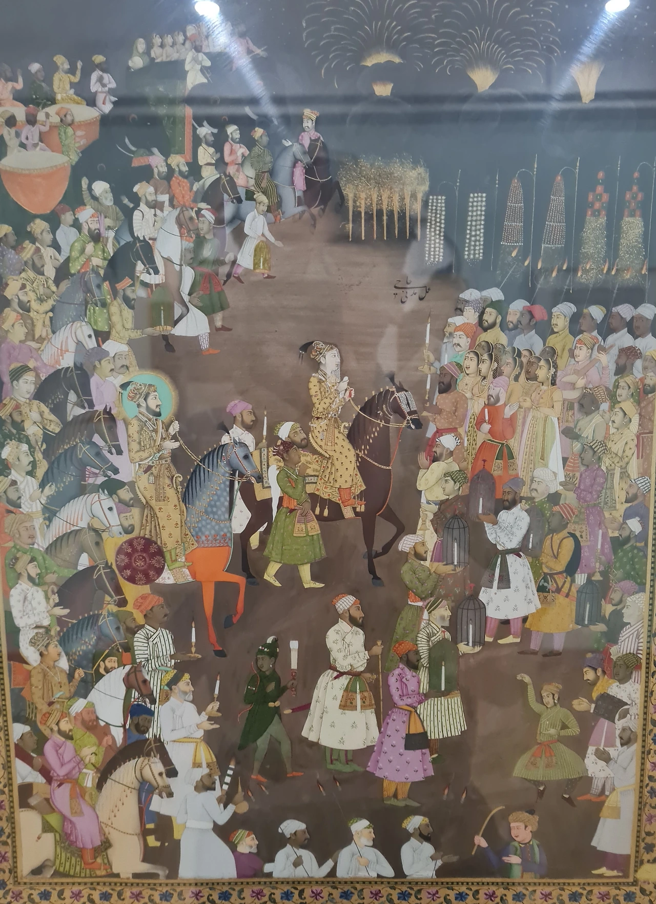 샤자한이 큰 아들의 결혼식에 참석한 모습을 그린 세밀화, 참석자들이 누군지 다 알아볼수 있도록 그렸다고 한다. 그리고 무슬림남자들은 실크옷을 안 입는다는데... 처음 안 사실.