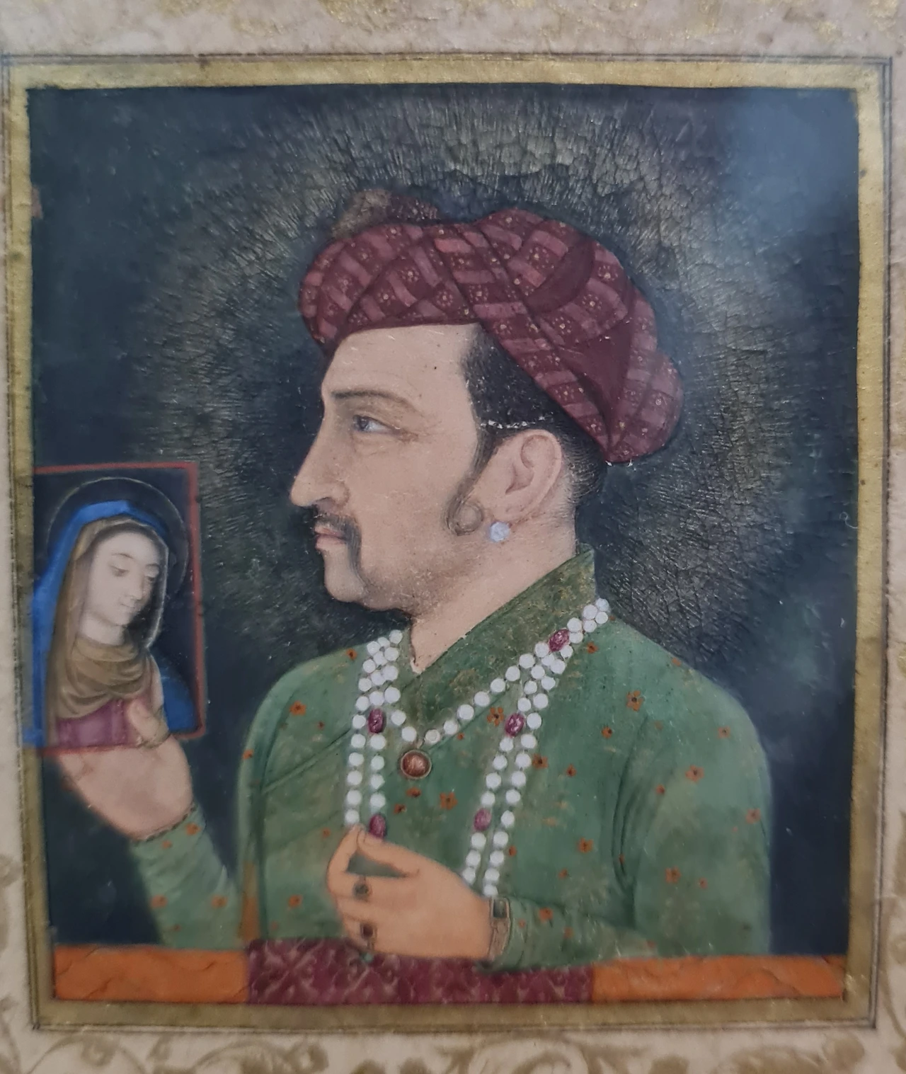 악바르 대제 후반기에 반기를 들었던 아들, 자항기르왕이 마돈나상을 들고 있는 특이한 미니어쳐 그림