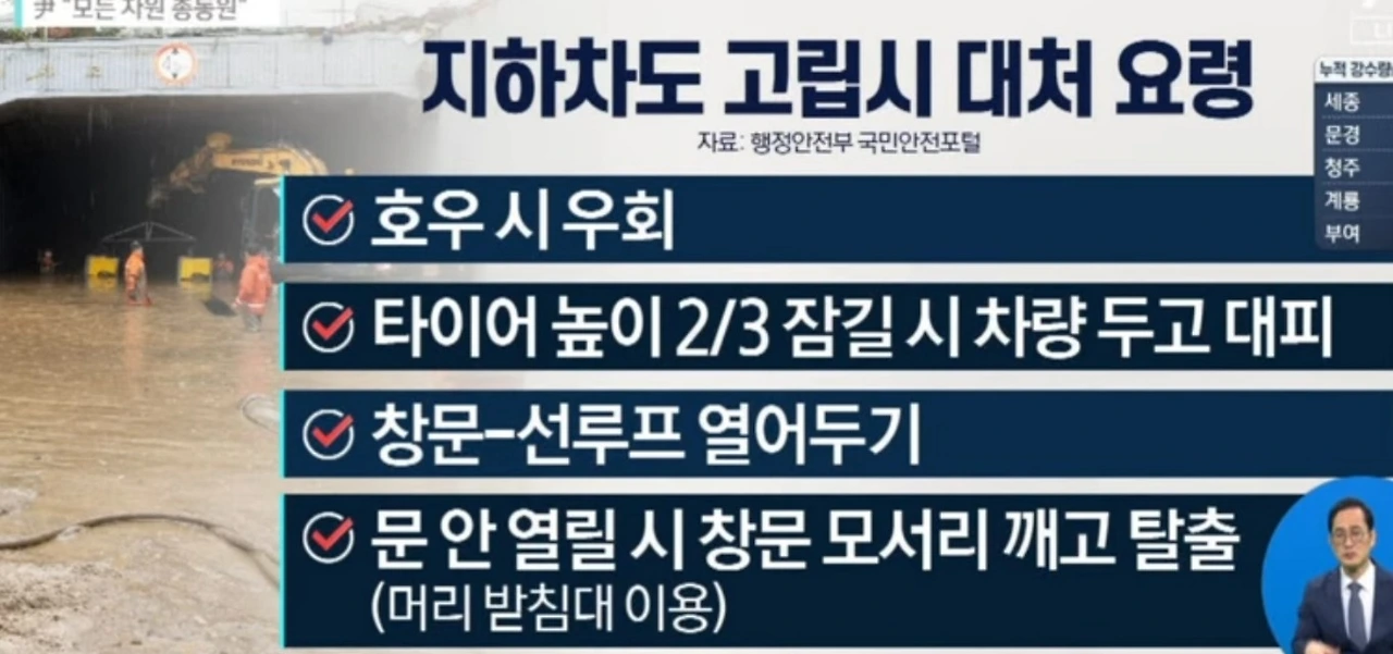 작년인가요? 포항 아파트 지하 침수 참사때도 지하 대피요령을 공지하는 기사들을 올렸습니다.