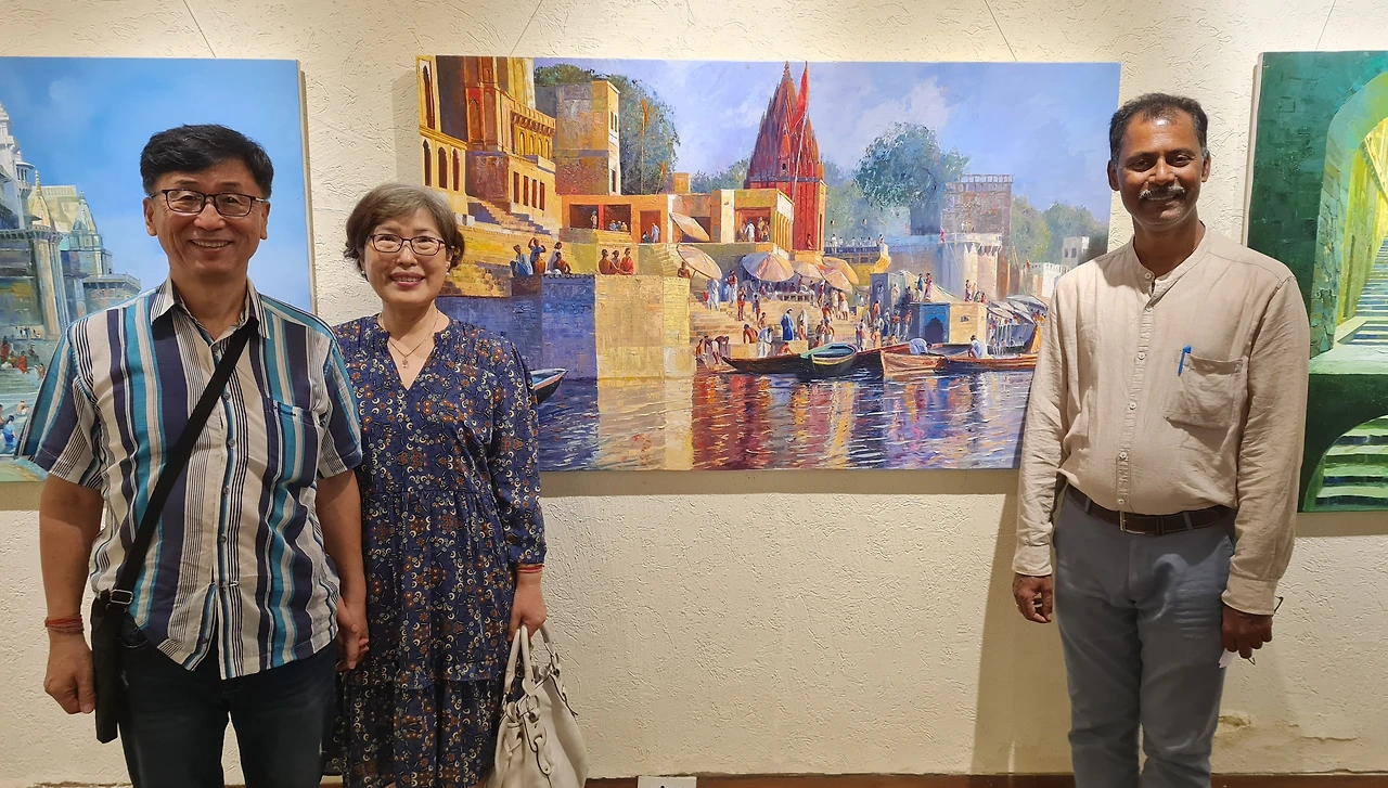 몇번을 만나다보니 친구가 된 작가, 뱅갈로르 근교에서 작품활동을 하신단다. 코로나 이후로 작품의 분위기가 밝아졌다.