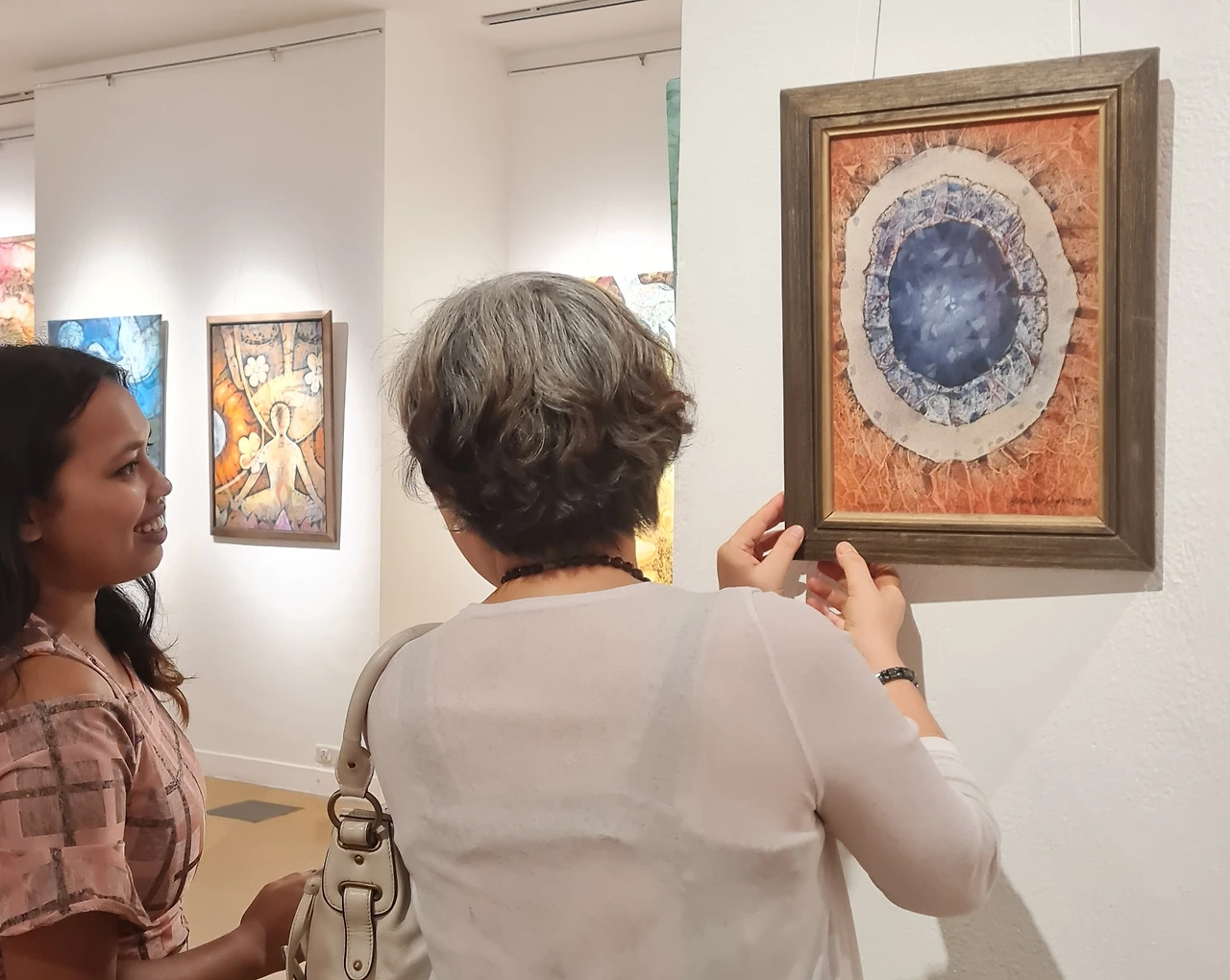이번 경우는 작품보다도 작가를 더 좋아합니다만... 일년전 특별 게스트로 저희 부부를 작품전에 초대한 적이 있는 바스카 싱가씨로 내가 맘에 들어하는 작품이 있다고 하면 돈에 구애없이 가져가라고 합니다. 참 그런 말 하기 힘들잖아요? 예전에도 구입을 망설이던 작품을 대하니 참 기분이 좋았는데 이번에는 판매가 되어버렸네요. 사실 그림이 크면 작은 집에 어울리지도 않아서 안사게 됩니다.