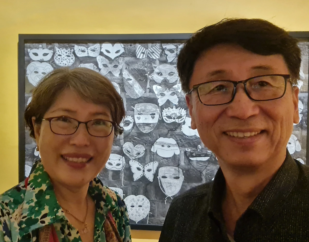 복잡한 실내를 나와서 입구쪽에서 초면의 예술가들과 대화를 나누고 있었는데 눈에 띄는 복장의 부인이 입장하다가 눈을 마주치며 반가워합니다. 잠시... 얼굴이 낯이 익기는 한데... 어리둥절해있는 내게 형준 엄마 아니냐?며 자기는 아만 엄마라 합니다.