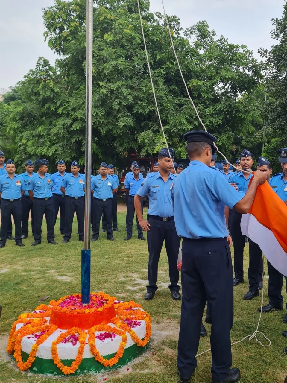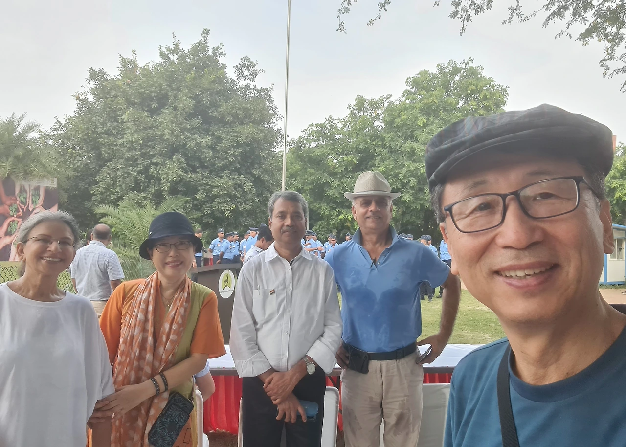 8시전이었는데 국기 게양식을 한다고 군인들이 각세워서 두줄로 서있고 한참 준비에 여념이 없습니다. 평소 알고 있던 공원 지기들이 와서는 VIP석에 앉으라고 권합니다. 마침 건너편에서 오던 친구부부와 마주치고 우리는 반가움에 인사를 나누고 지난 이야기꽃을 피웠습니다. 벌써 2년전인가? 네루 파크에서 새벽 걷기를 함께 한뒤로 처음 보는데 영국물을 먹어서 그런지 얼굴이 한층 젊어뵈고 이뻐졌습니다. 연신 땀을 흘리고 있었는데요...