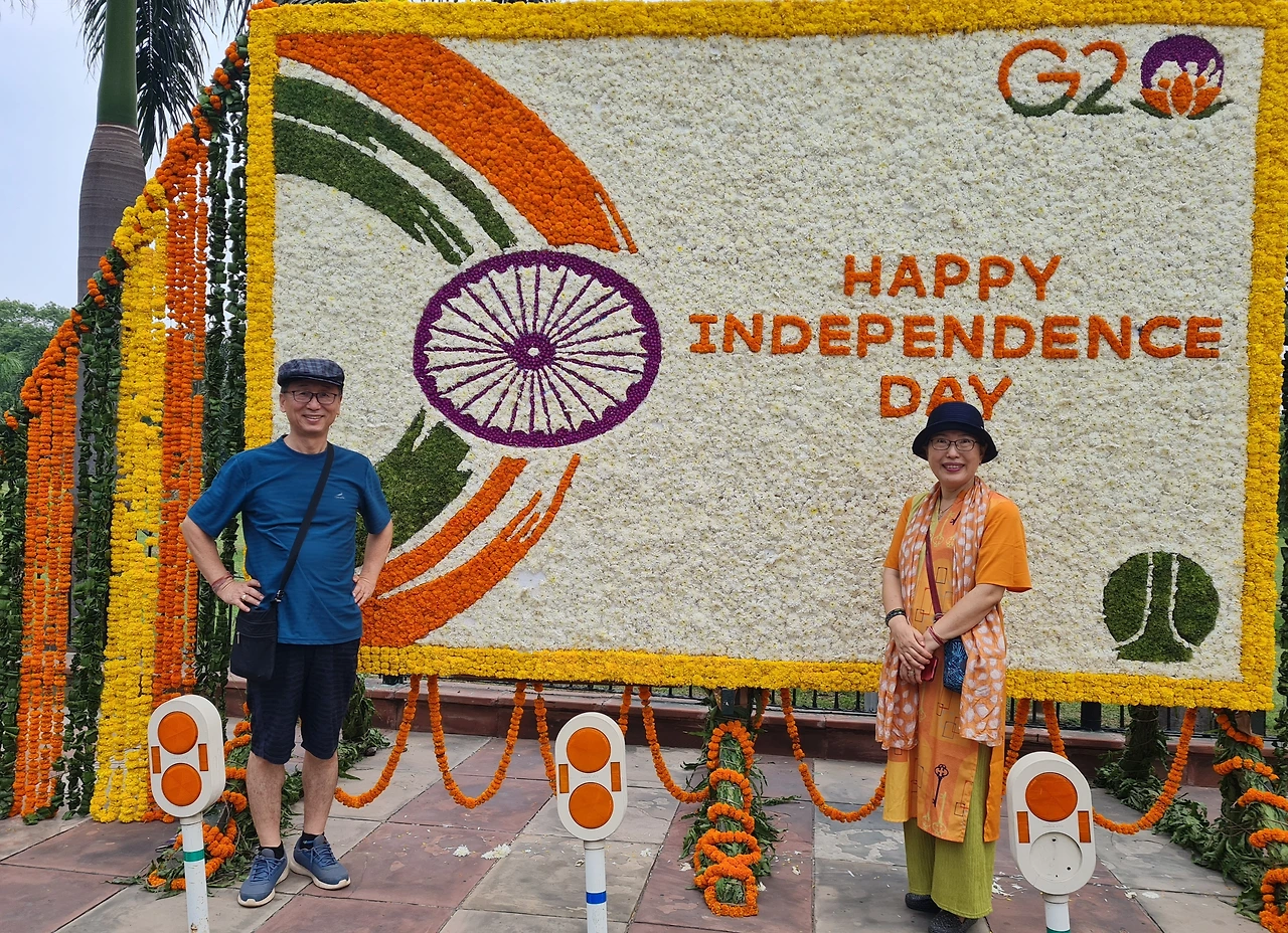 뜻깊은 8.15행사장에 함께 참석했습니다. 정기적으로 인도엔 오지만, 독립일 행사장엔 아주 모처럼 참석했다고 하면서 매우 기뻐합니다.