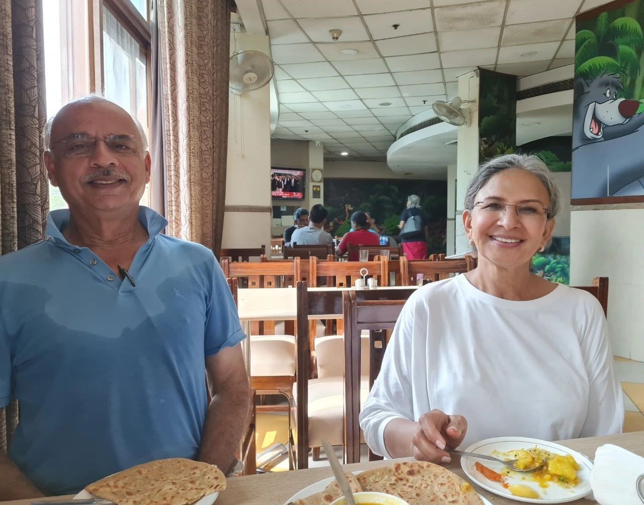 친구 부부는 어제 런던에서 왔고 내일 찬디가르로 갑니다. 먼 여행길에 피곤할 겁니다.