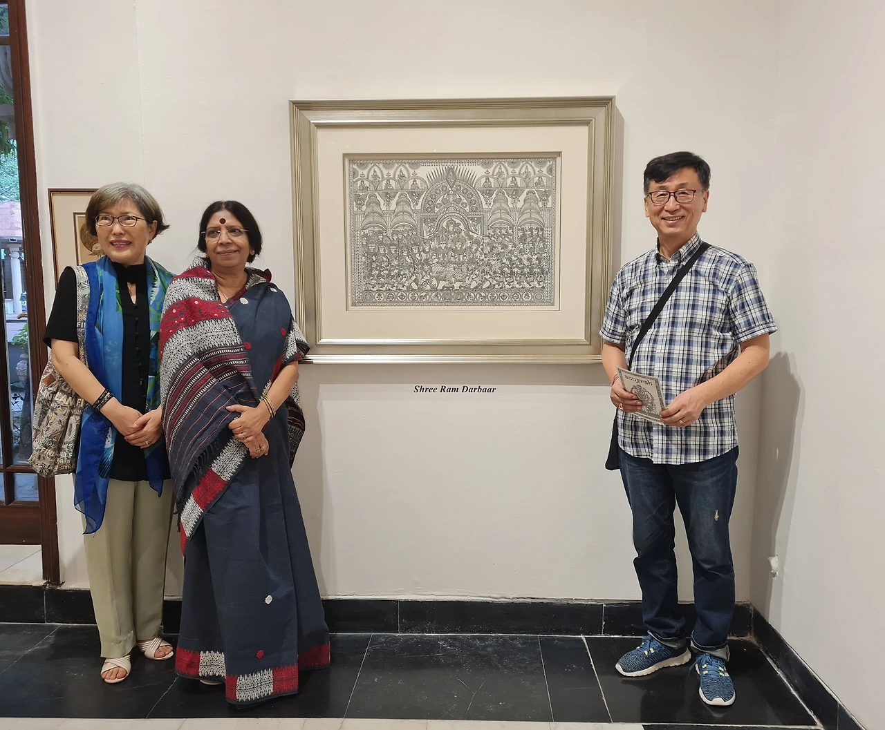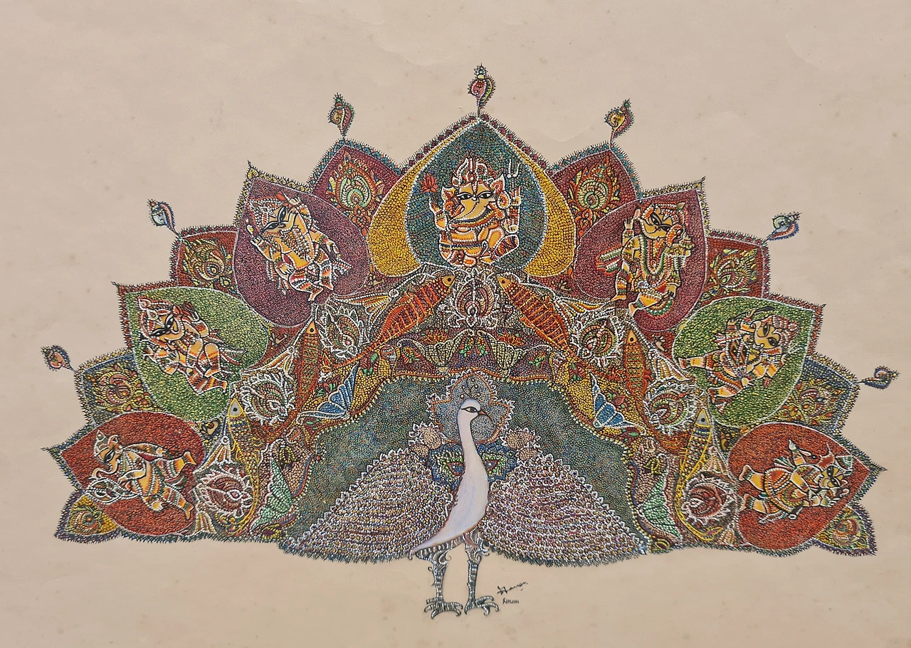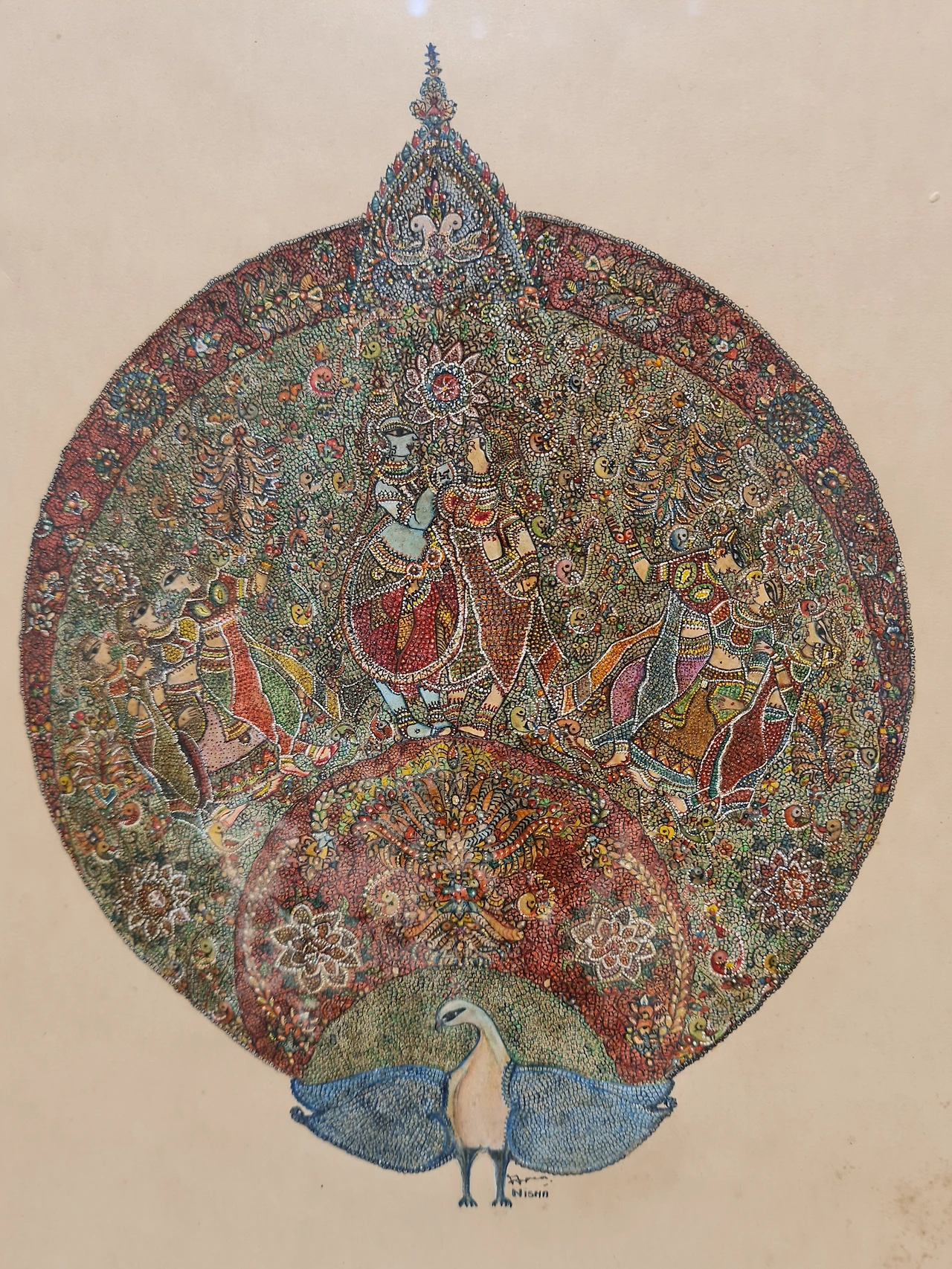 로미가 토요일 저녁에 집으로 초대했기에 그녀가 좋아하는 할디람에서 스위트를 사가려고 비카너 하우스에 갔습니다. 우중의 비카너 하우스는 나름 매력이 많습니다. 입구에서 비쉬누신의 탈것인 가루다 앞에서 사진도 찍고. 내부에서 멋진 그림전? 예술의 한 쟝르를 만났습니다. 세밀화의 일종인 듯한데 보는 제가 눈이 다 아파올 정도로 아주 세밀하게 그리고 색을 입혔습니다.