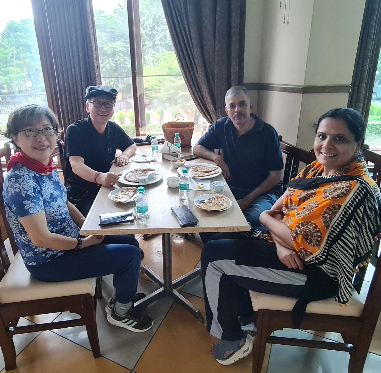 일요일에 로미는 고아에 땅을 구입하고자 MOU맺기 위해서 새벽 일찍 고아로 가고 전날 밤에 델리로 온 시킴의 라비부부와 아침에 만나기로 했기에 보통때와 달리 느즈막히 6시 반경 집을 나섰습니다. 7시에 만나자던 그들이 15분이나 늦었네요. 어젯 밤에 도착해서 많이 피곤해 보였고 모두 좀 홀쭉해졌습니다. 라다야 뭐... 살이 너무 쪘었기에 지금이 딱 좋지만 라비는 좀 걱정되더라고요.