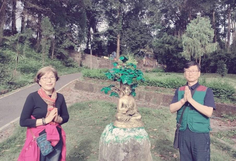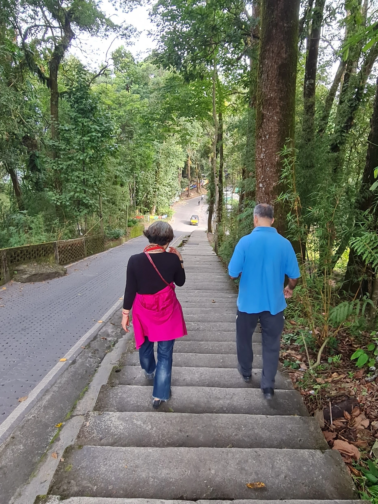 택시 스탠드에서 펠링으로 가는 것을 알아보자니 모두 3000루피 이상을 주어야 하거나 아니면 다음날 9시 전에 출발하는 쉐어 택시를 타야 한다고 하였다. 남편이 여기저기 알아보던 차에 나는 말쑥하게 차려입은 젊은이와 대화를 나누다가 그의 차를 타고 펠링으로 가기로 하였다. 가는길에 그곳의 유명한 부다공원을 들르기로하고...