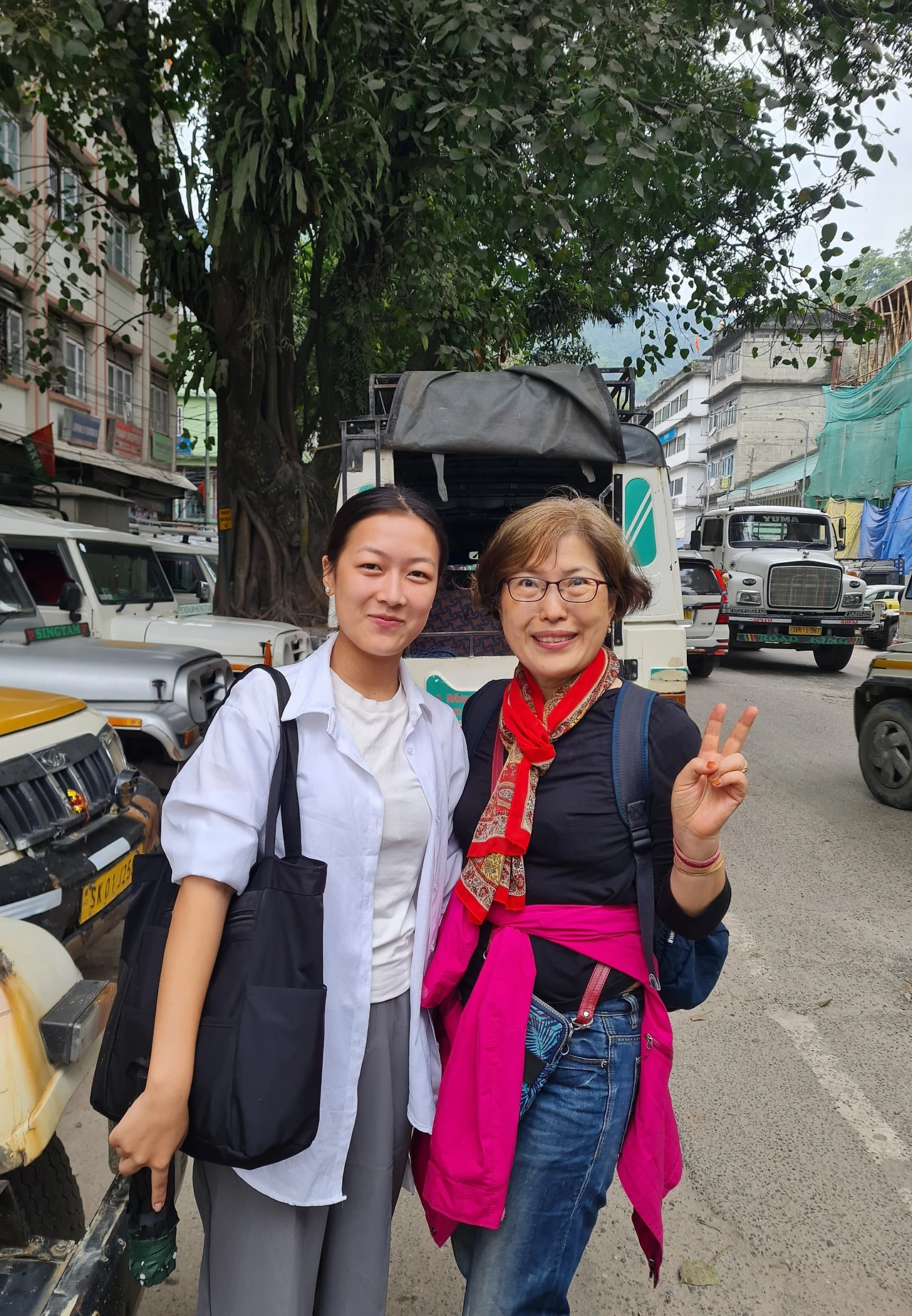 우리는 버스표를 알아보려고 더 올라갔는데 그제 저녁때보다도 훨씬 가까운 길이었다. 그런데 쉐어 택시가 펠링까지는 운행을 안한다고 해서 길 중간에 차를 얻어서 타고 가기로 했다. 그리고 또 조금 더 올라가니 유명한 부처님의 도장이 나오고 어린 아이들이 도를 닦는...