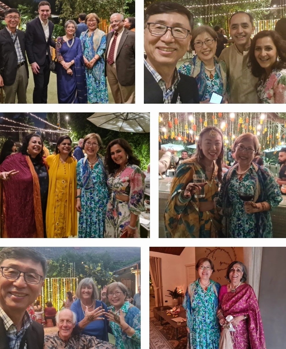 비니타는 여전히 월드 뱅크에 자문역을 맡고 있고 남편도 중국대만유럽등 여러 회사들과 정부관련 일을 하면서 노익장을 발휘하고 있습니다. 결혼식 전야제는 친지, 소실적 친구와 학교 동창생 등 가까운 이들을 초대하여 함께 즐기는 날입니다. 두 아들이 미국 뉴욕에서 자리잡고 있어서인지 미국을 비롯 유럽과 아시아 등지에서 상당수 하객들이 참석했는데요... 저희 부부를 이런 의미있는 가족 모임의 날에 초대해 준 라나드씨 부부에게 감사할 일입니다.