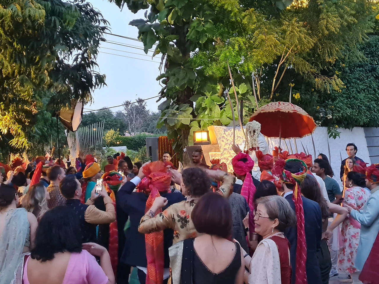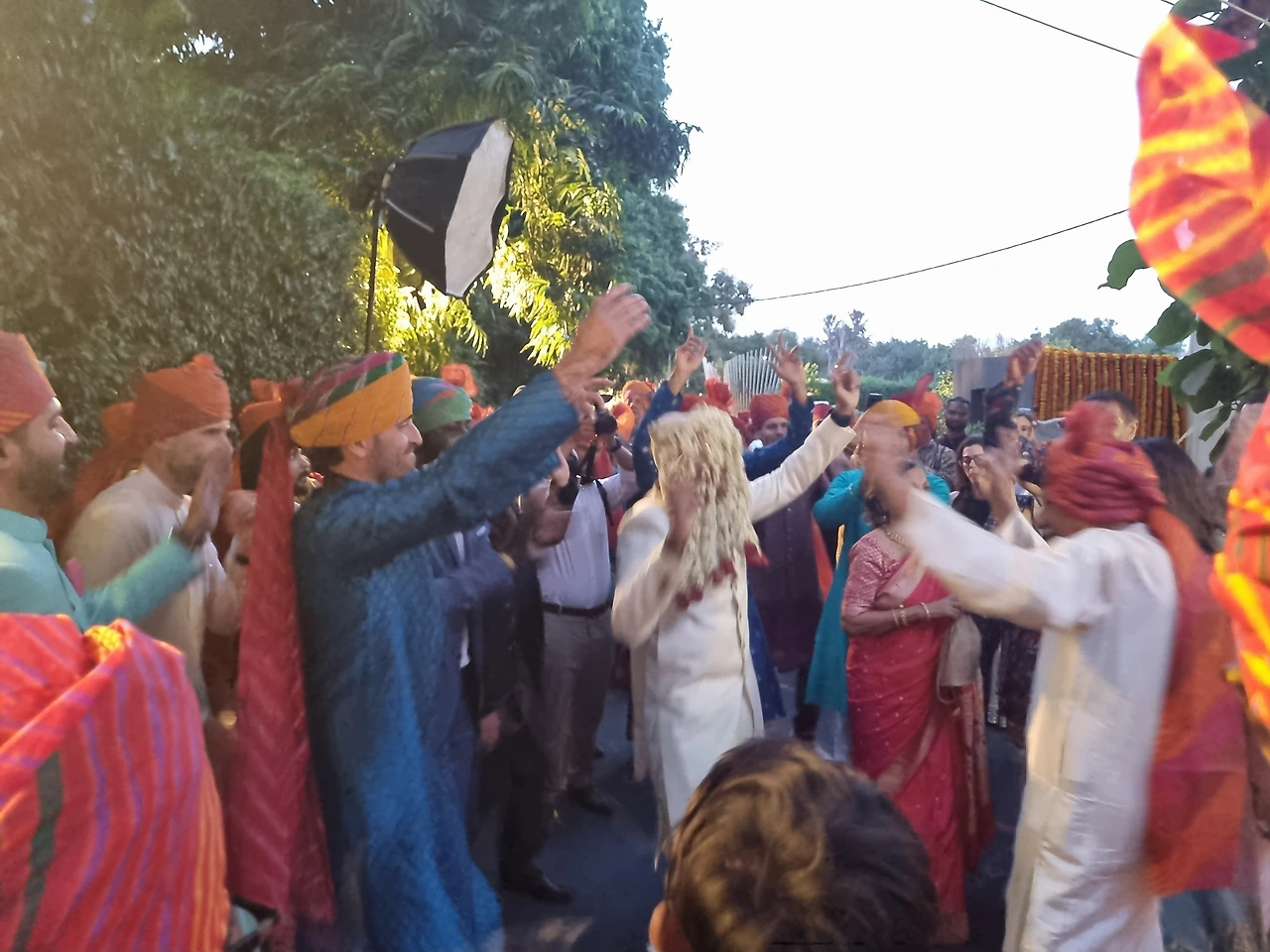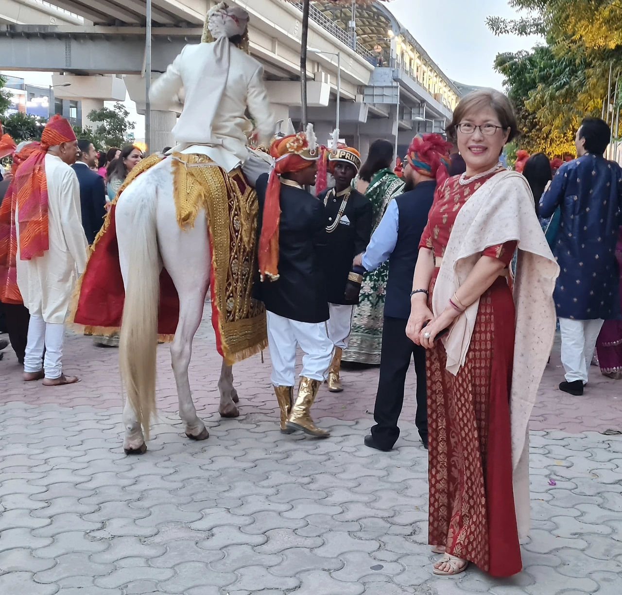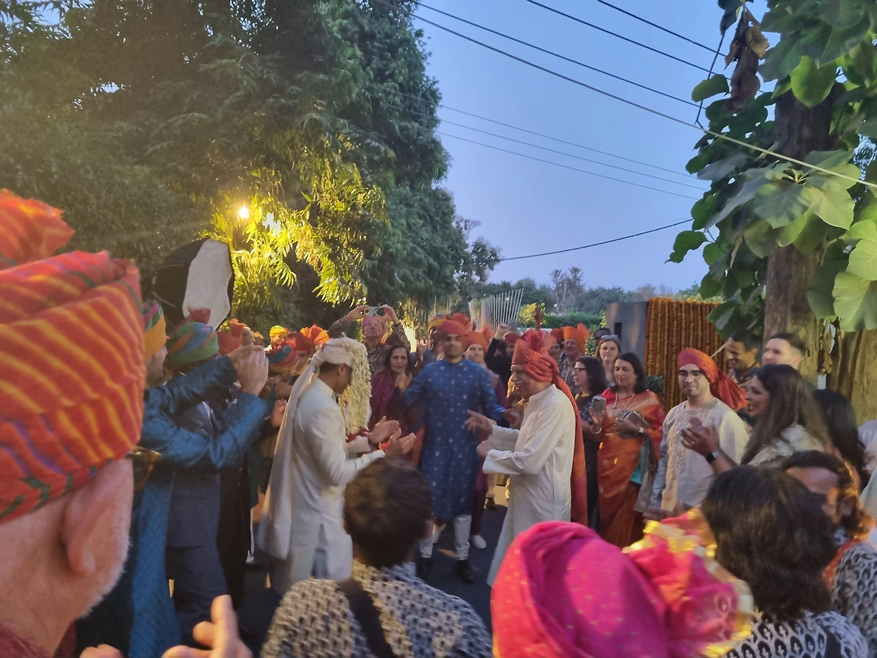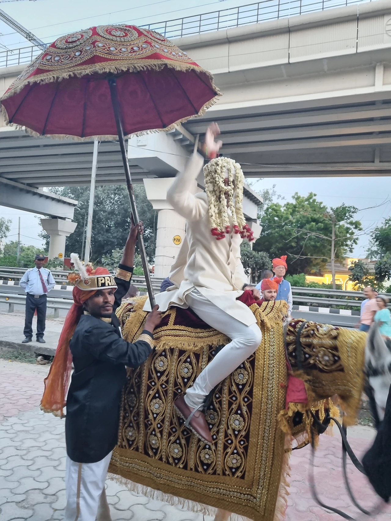 친지와 친구들 모두 신랑이 말타고 행사장에 들어가는 것을 호위하면서 라이브 음악에 맞추어 춤추고 그러는 축하행렬을 이야기합니다. 돌락이라고 우리나라 북같은 것을 두드리는 사람들에게 가끔 현금을 뿌리면서 흥을 북돋우는데 사실 결혼식장 후문으로 나갔다가 정문으로 들어왔다는...ㅎㅎㅎ 보통은 신랑집에서 시작해서 신부집이나 결혼식장까지 춤추면서 계속 행진하는데 가까운 거리라서 얼마 시간이 안 걸렸습니다.