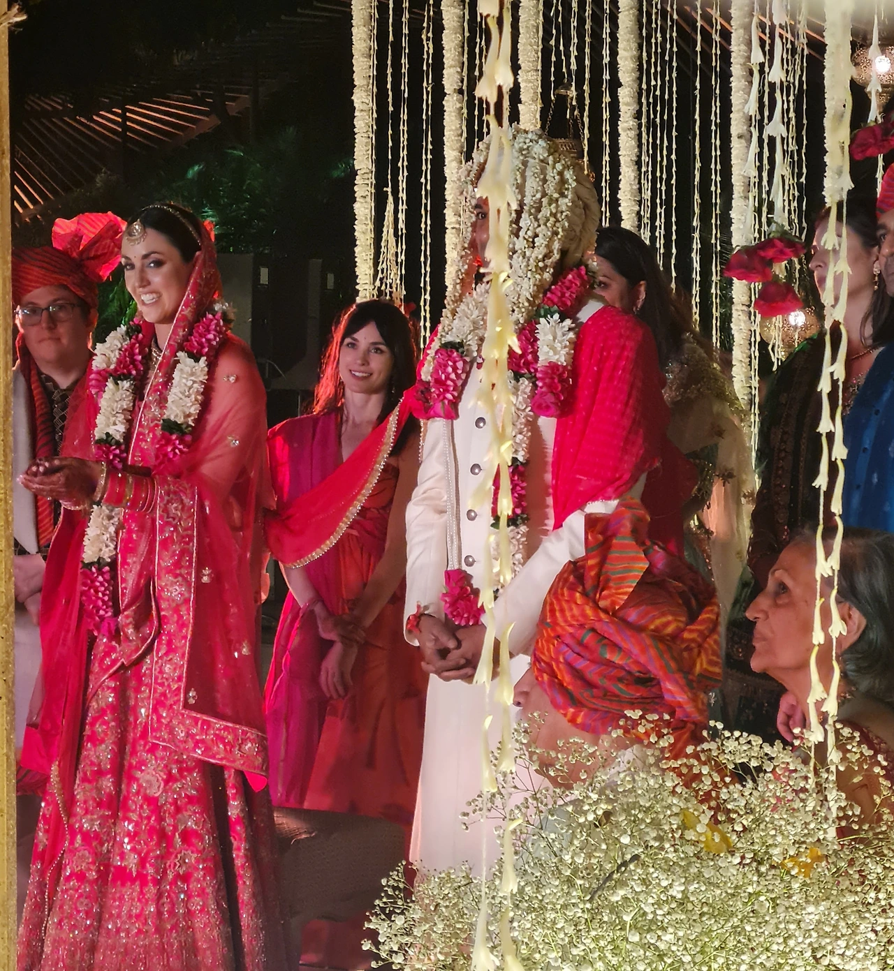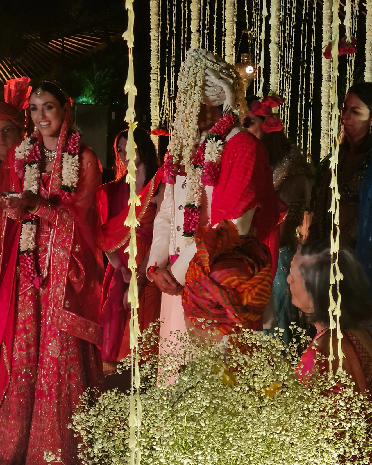 이는 힌두 결혼식의 시작으로, 신랑과 신부가 처음 만나서 생화로 만든 화환을 서로에게 걸어줍니다. 이는 두 가족과의 화합, 전통과 관습의 융합을 의미합니다.