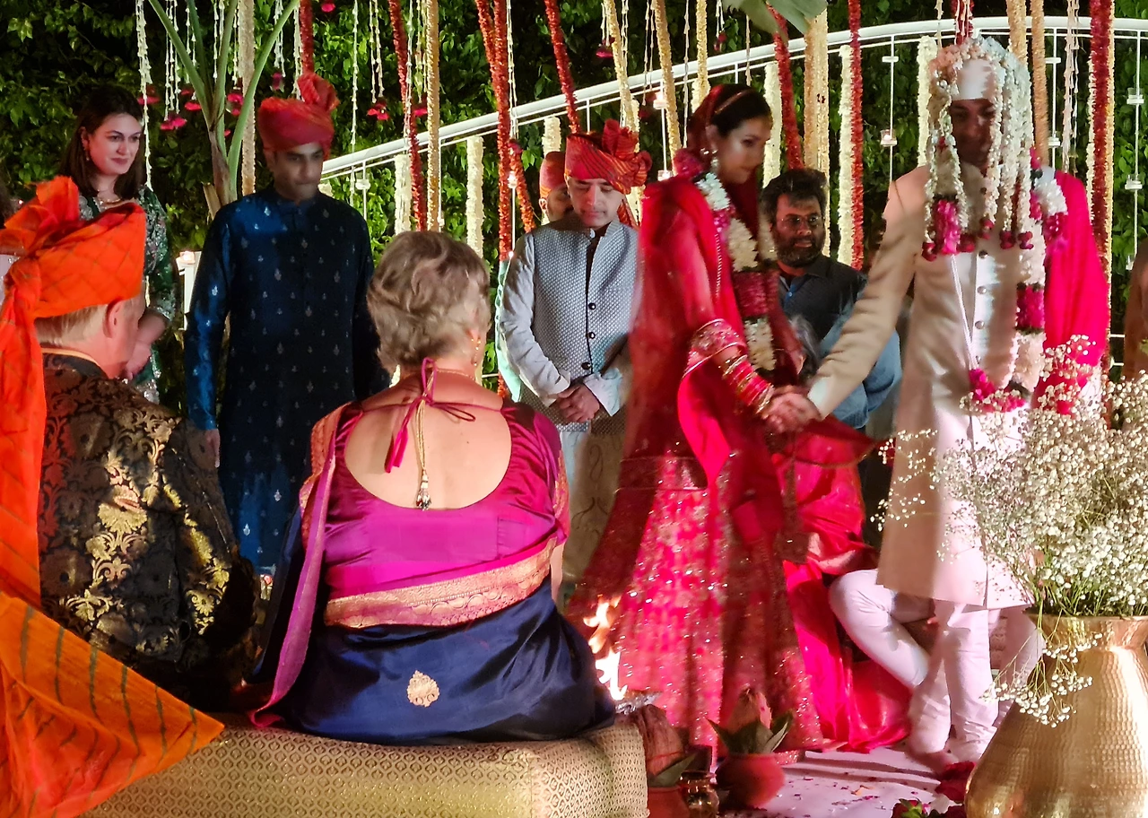 이는 결혼식 행사에서 제일 중요한 과정으로 신성한 불 주위를 도는 것입니다. 불 주위를 돌면서 만트라를 외우며 7페라의 서약을 합니다. 사실 펀잡식 결혼식이라네요... 그러면 4페라만 한다고 구박사에 나옵니다. 멀리서 지켜봤기에 어찌 진행되는지 자세히 모릅니다ㅡㅎㅎㅎ