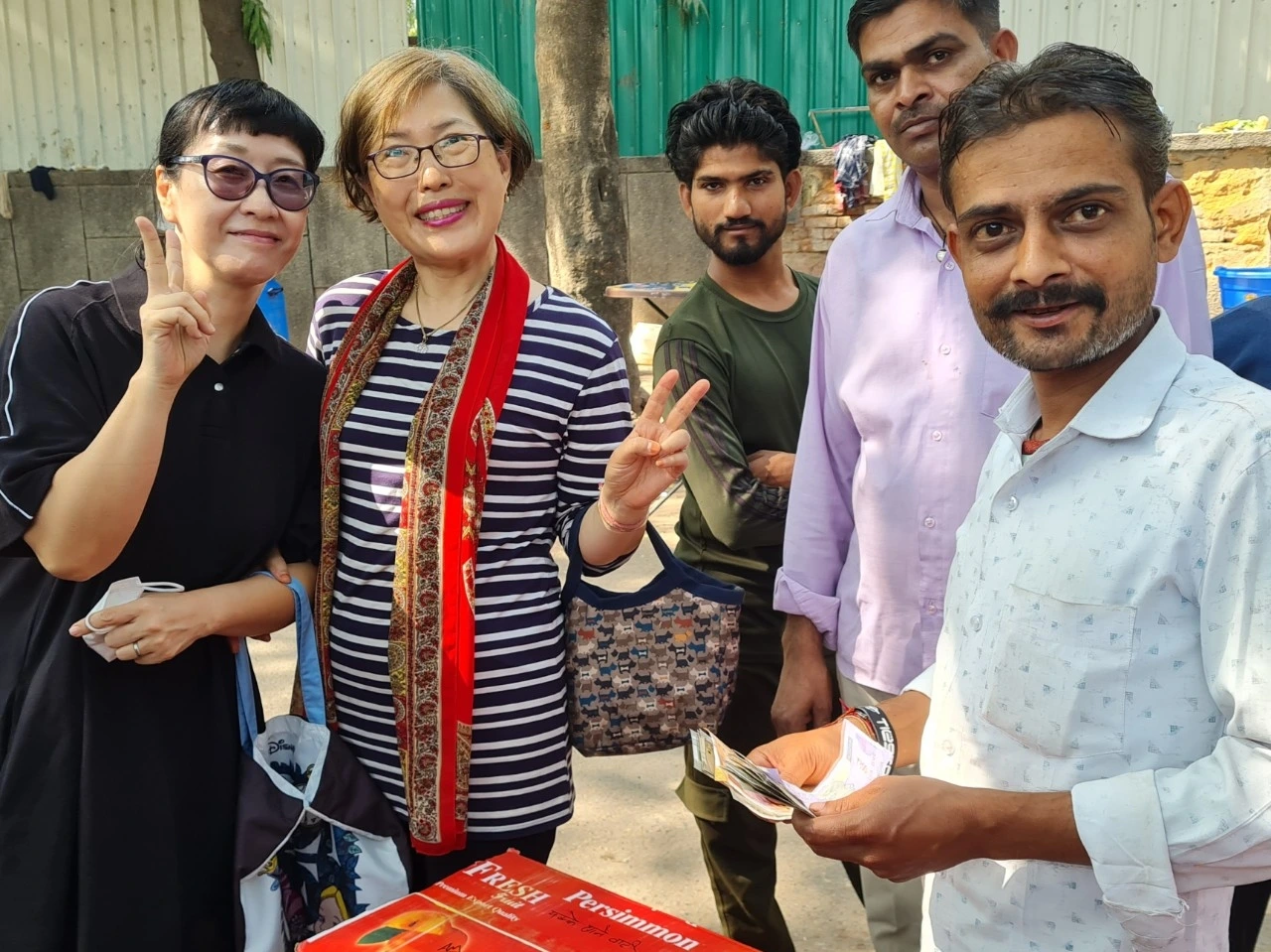 대봉감사러 가서 감 6박스를 킬로당 110루피에 구입했습니다.(나는 두박스) 도매시장에 가보니 누가 싹쓸이해서 흔적도 보이지 않더라고요... 온라인 판매상이 비싸게 팔던데 거기서 그러지 않았나... 짐작해 봅니다. 가격도 온라인상에서는 두배이상 받는 것 같던데요.ㅠㅠ 여하튼 20년 이상 알고 지내던 시장사람을 도와주는 차원에서 6박스 잘 샀습니다. 우리가 감 사는 것을 구경하려고 사람들이 열댓명이 모여들었답니다.ㅎ 큰돈을 만지는 판매상에게 술마시지 말라고 당부하고. 오지랍을 떨었는데 다들 웃으면서 그에게 얘기하더라고요. 좋은 일을 상서로운 날에 한 듯해서 기분이 좋았습니다.