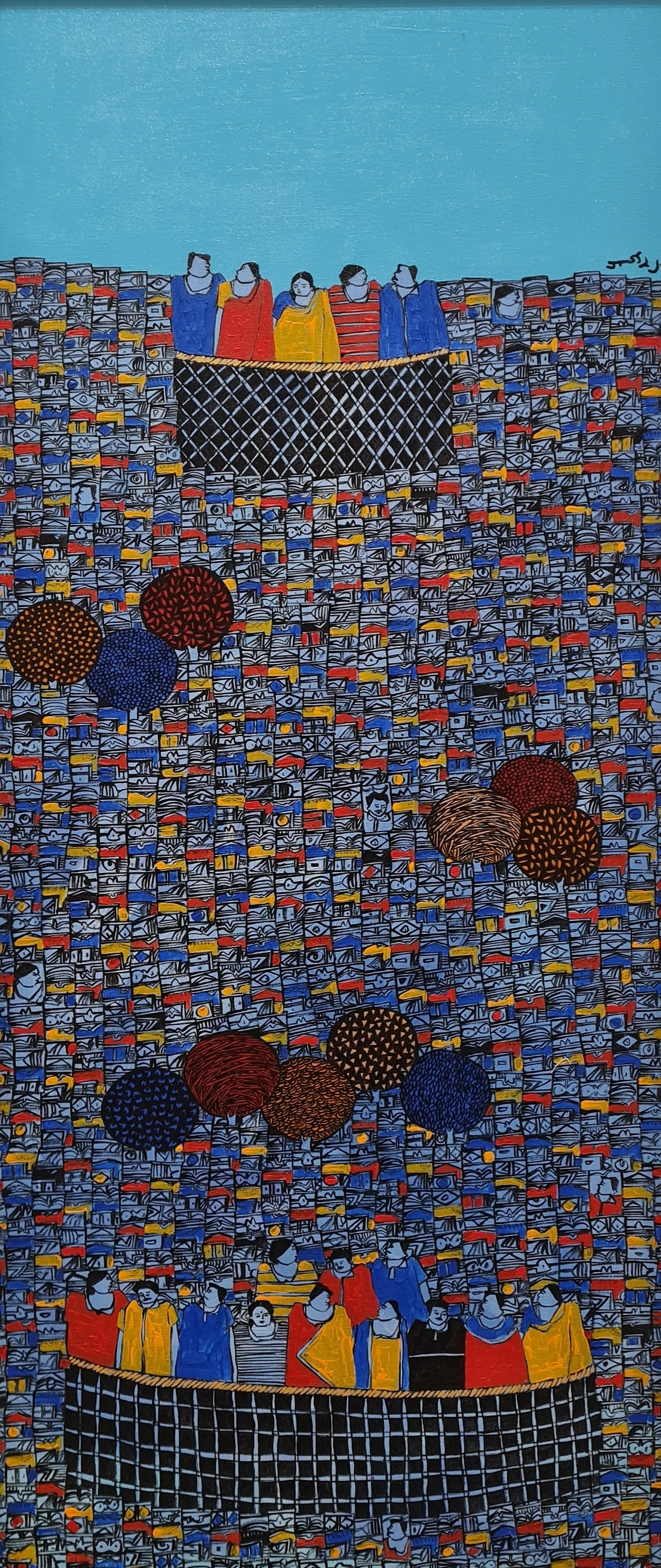 참 인상적인 작품들이었는데요...대도시의 빡빡한 밀집 환경을 그림으로 표현하였습니다. 손이 무척 많이 가는 독특한 그림입니다.