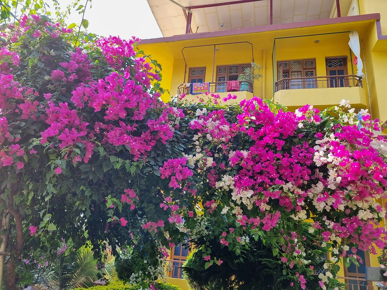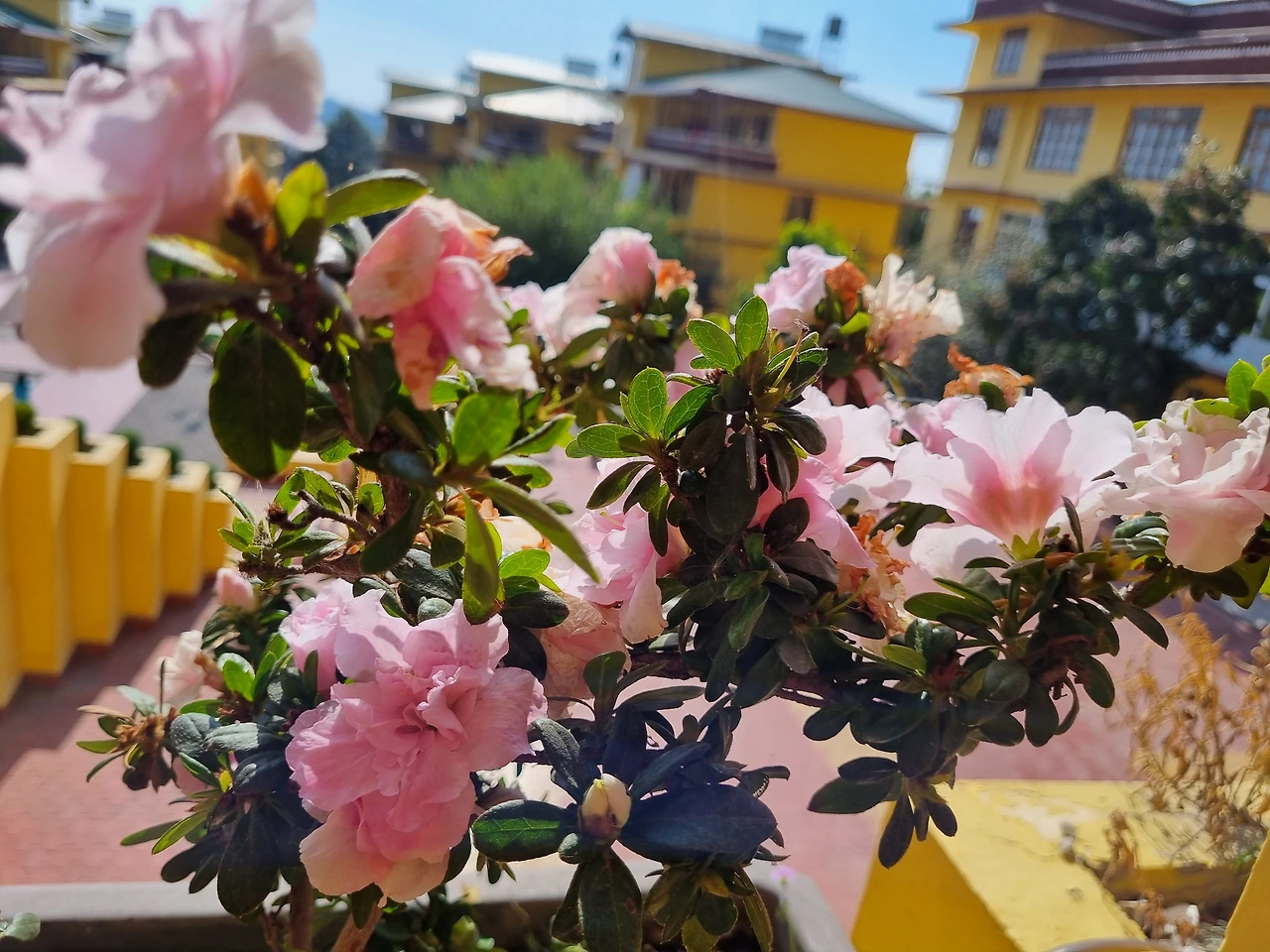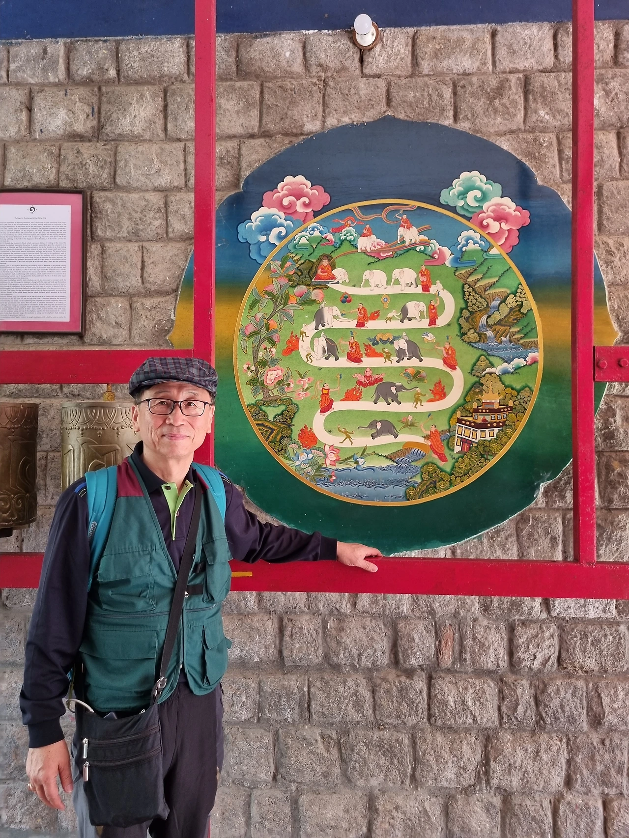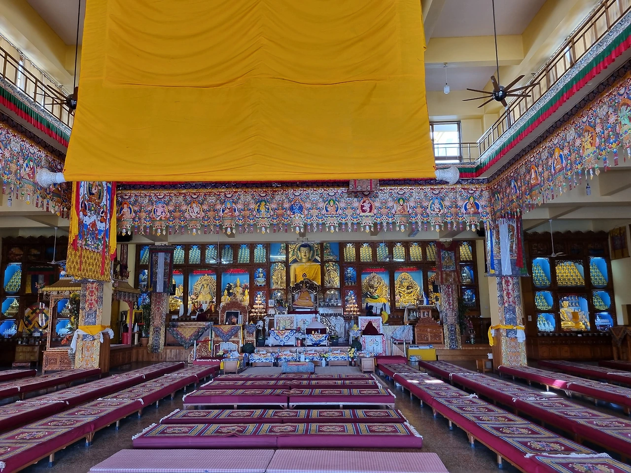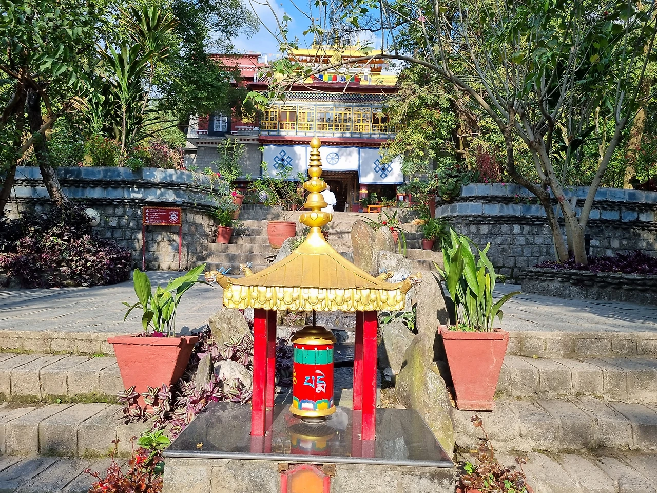 작년에 못탄 케이블카를 타러 갔는데요... 전날 남편이 박수나그 폭포를 보러 갔다가 살짝 넘어졌는데 날카로운 돌 모서리에 정강이가 10센티 정도 패이고 피가 나는 불상사가 있었습니다. 그래서 케이블카 타고 내려갔다가 다시 올라오는 일 밖에 없을 듯하여 패스하려던 차에 나이드신 키 작은 기사분이 시내구경하라고 부추키시네요... 그래서 노블링카도 보고싶어서 택시를 탔습니다. 꽤 가네요... 규토 탄트라 사원(Gyuto Tantric Monastery Temple)은 규모가 크다기 보다는 양옆으로 숙박시설과 교육시설이 같이 있어서 학생들과 스님들이 공부하거나 기거하고 계셨습니다.