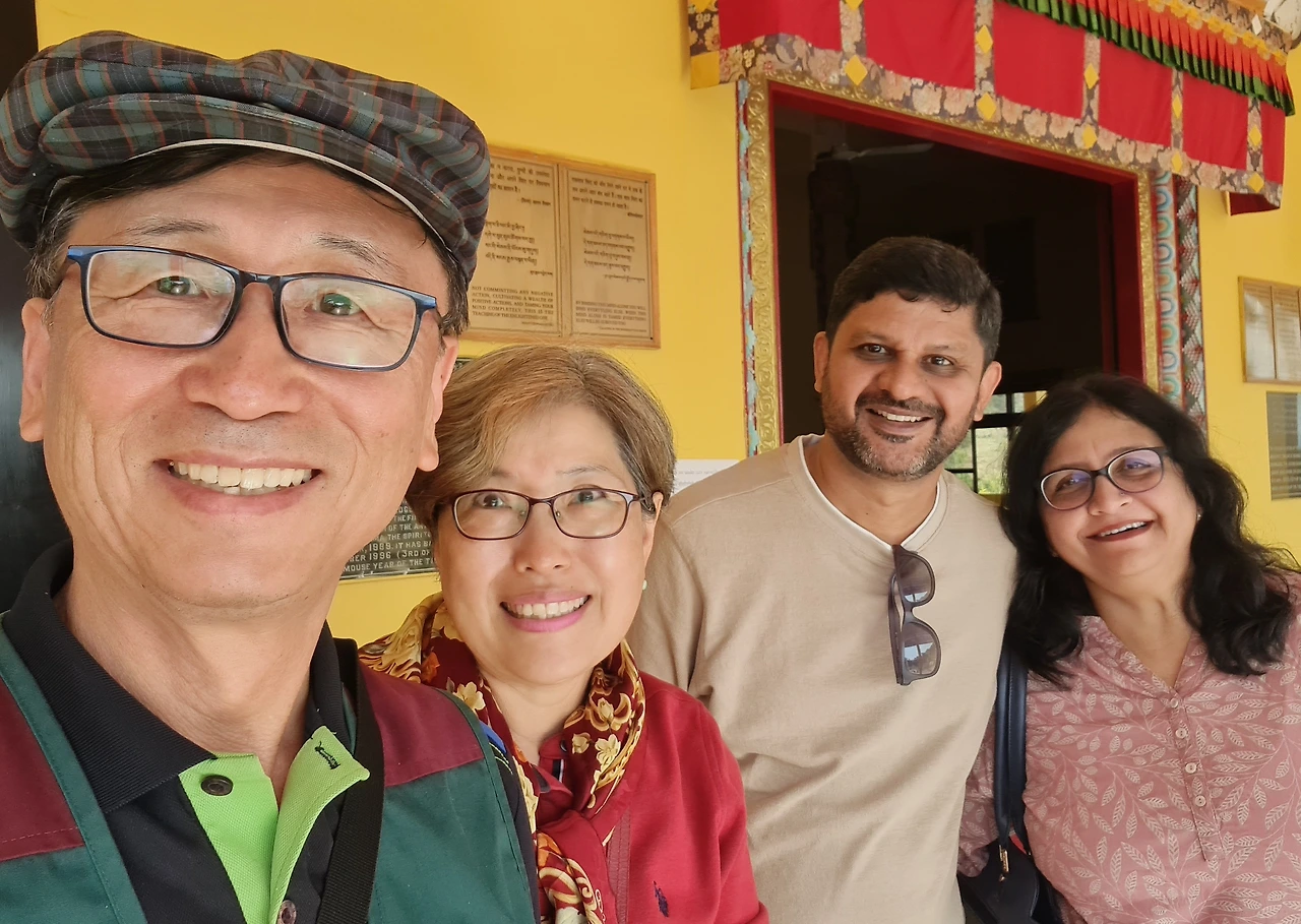 그리고 전날 폭포에서 만났던 비카너에서 온 부부를 입구에서 만났네요. 대단한 인연이라면서 사진을 찍었습니다. 나오는 길에 일단의 스님들과도 얘기를 나눴는데 어릴적에 들어와서 평생을 이곳에서 지내야 한다고 합니다. 그러면서 저희가 한국인이라고 하니 반기면서 한국드라마 보는 것을 좋아한다고 하시네요... 저도 넘 반가워서 마침 영미씨가 이집트에서 가져다준 하나 남은 구아바 쥬스를 드렸습니다. 왜 사식같은 것 받으면 기분이 좋잖아요? 귀한 것을 드려야 될 것 같았어요...