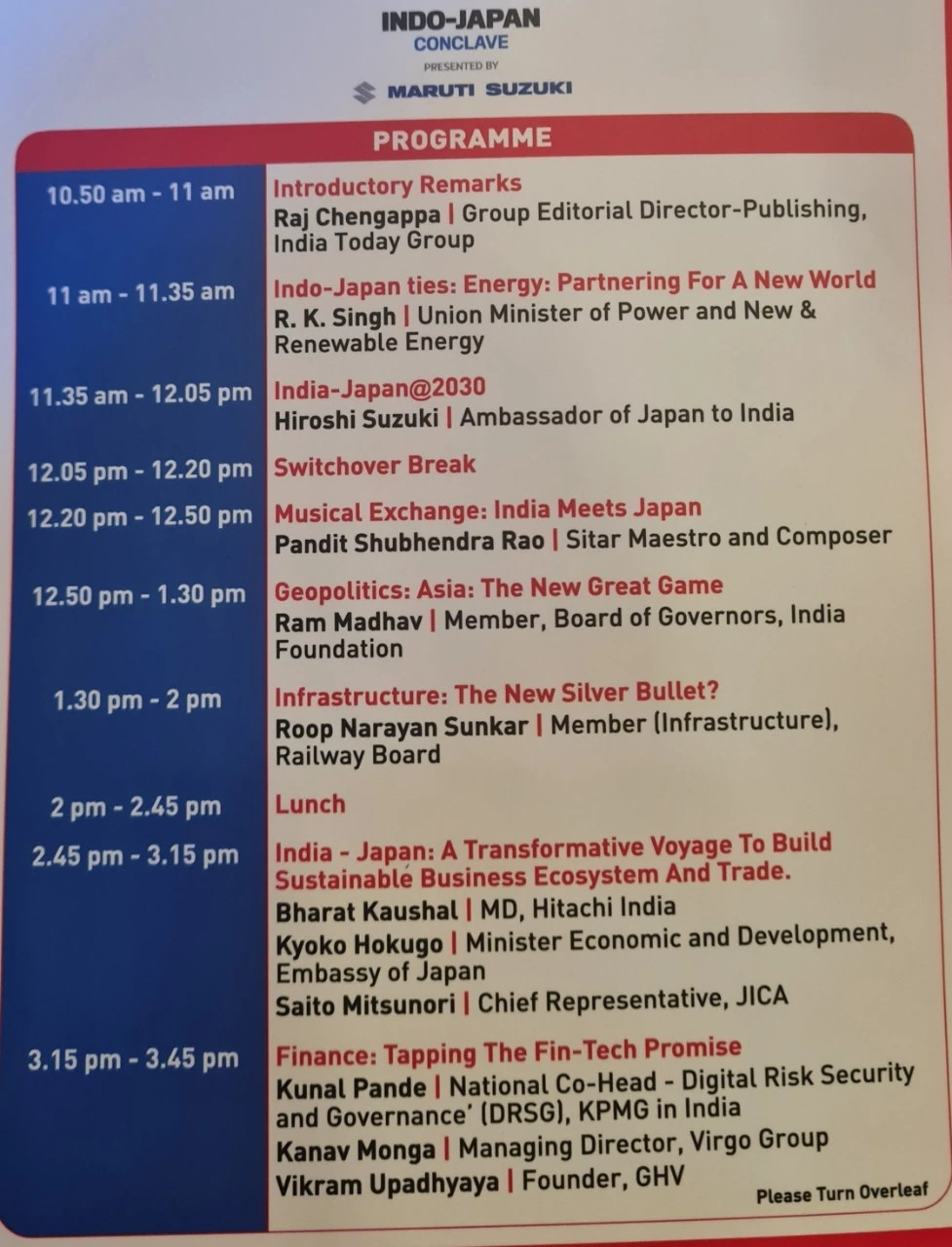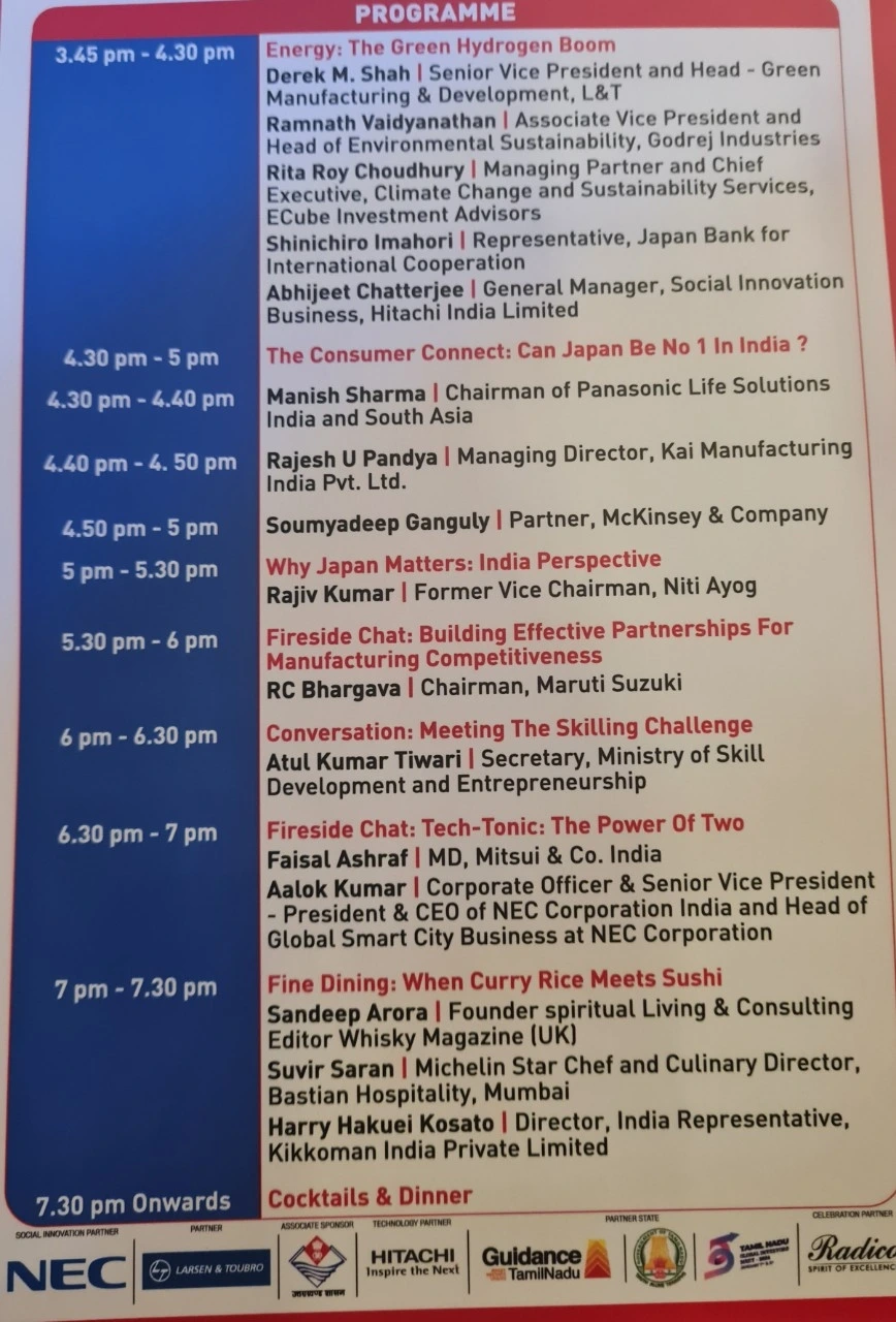 다음으로 계속 효율적으로 짜여진 프로그램의 순서에 따라 초대받은 사람들이 바뀌면서 여러 주제들을 다양하게 다루었다. 주요 인도진출 기업들이 스폰서로 참여한 하루 풀 프로그램인데 상당히 준비를 잘했고 알찬 프로그램이었다. 일본이 매우 야심차게 열정적으로 준비했다는 생각을 했다.