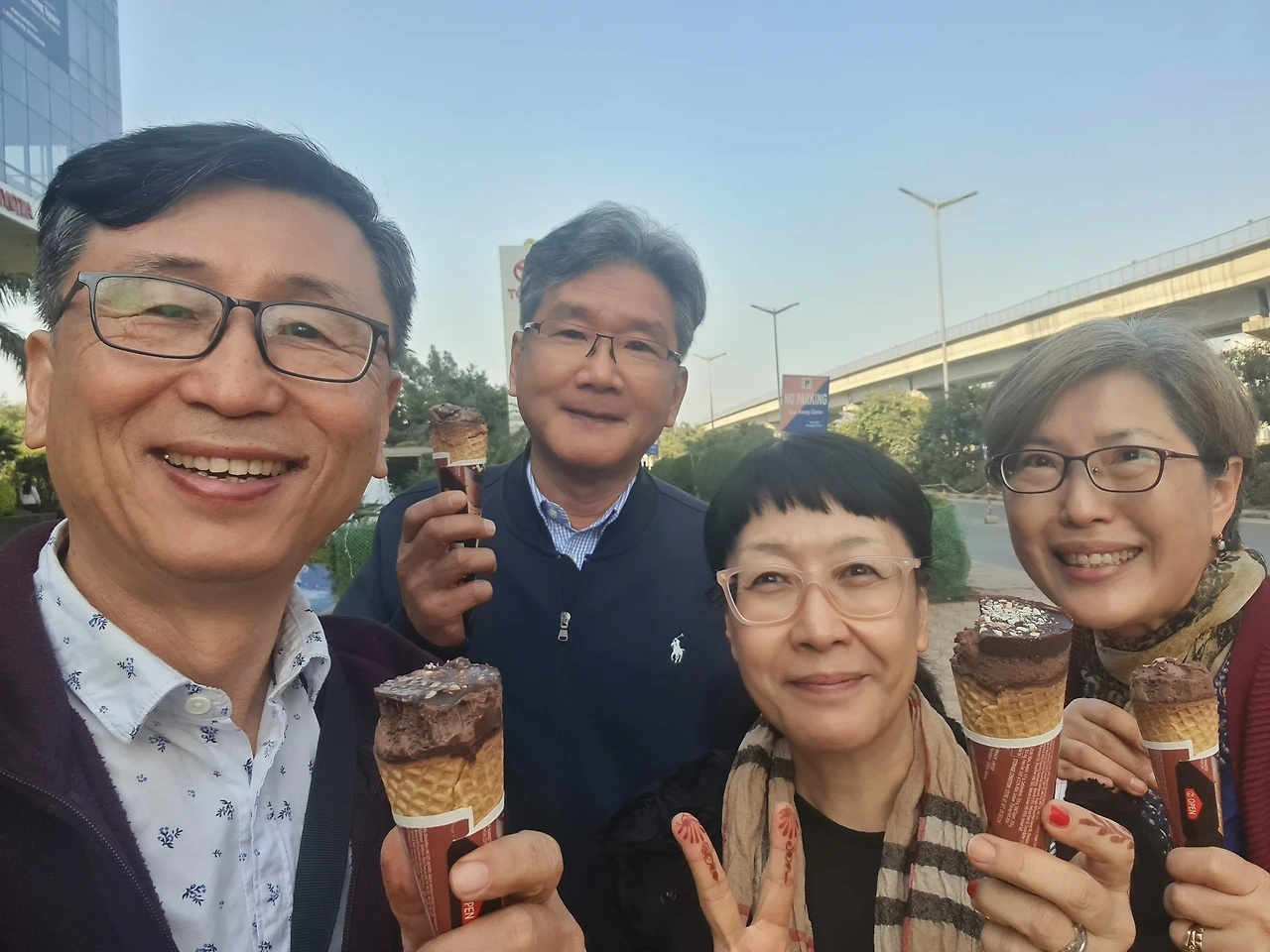 사실 오전에 구루가운에서 영미씨네 부부를 만나서 은행 일 도와주고 청담에 가서 식사를 한 탓에 여전히 배가 불렀답니다. 이쁜 영미씨네 부부도 여기에 한컷 올려야지요! 식사후 헤어지기 전에 월드콘을 같이 나누었어요. 인도 롯데에서 만든 거에요!