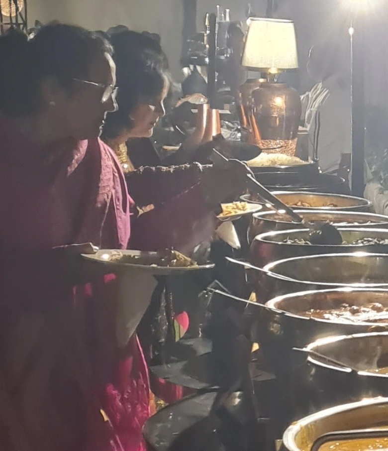 불에 막 구운 따끈한 짜파티가 있었습니다. 썹지없이 짜파티 한장 먹으니 고소한게 아주 좋습니다.^^ 저녁 식사대용으로 짜파티 한장 먹은 맛이 오래 남을 2023 년말 결혼식 피로연입니다.