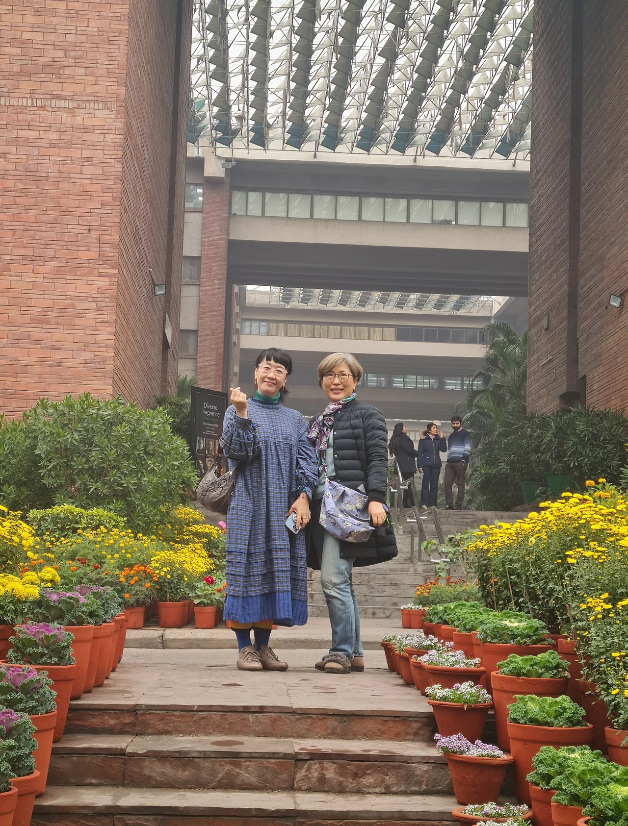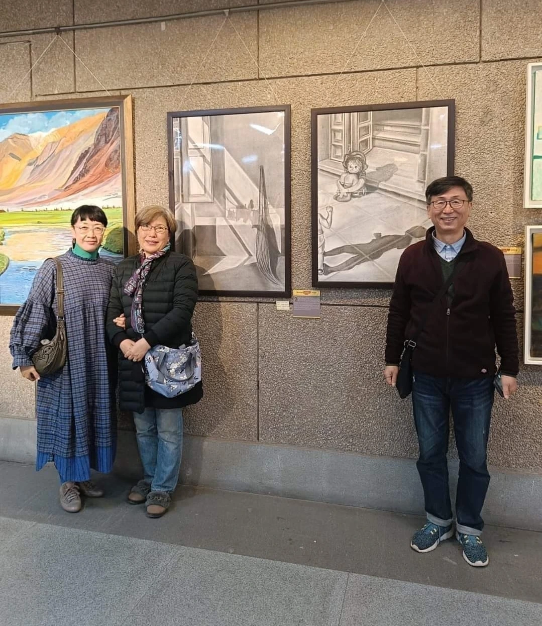 바스카 싱하씨의 따님이 전시회에 작품을 냈다고 하여 방문함.타누스카 싱하, 그리고 어느 이름 모른 작가님과 함께 밝은 그림 앞에서 한컷.