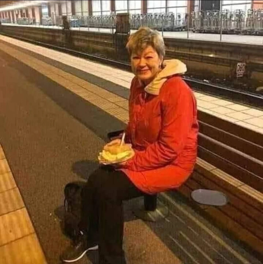 A Swedish citizen waiting for the train to return home immediately after leaving work.She has bought a Burger for her Dinner.This is her picture after being asked to pose for a photo.The name of this citizen is Johansson and her job is Minister of Labor in Sweden.She has no caravan of cars, she has no line of guards. She doesn't even have helpers. Sweden is a rich, developed country, but they show great discipline in the use of public funds!Developing countries can learn from this Lady the use of taxpayers money.
