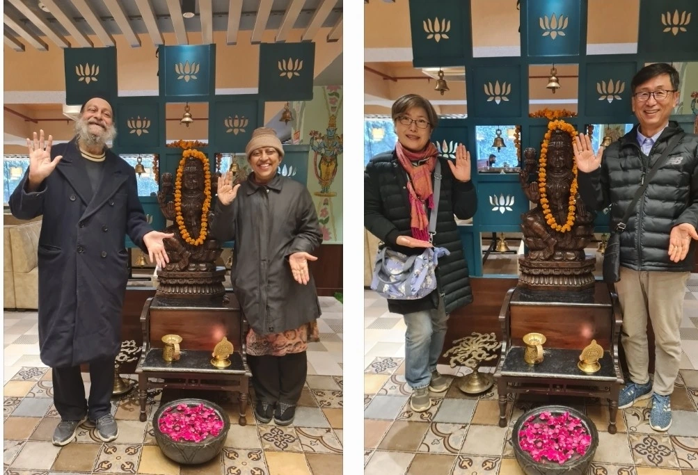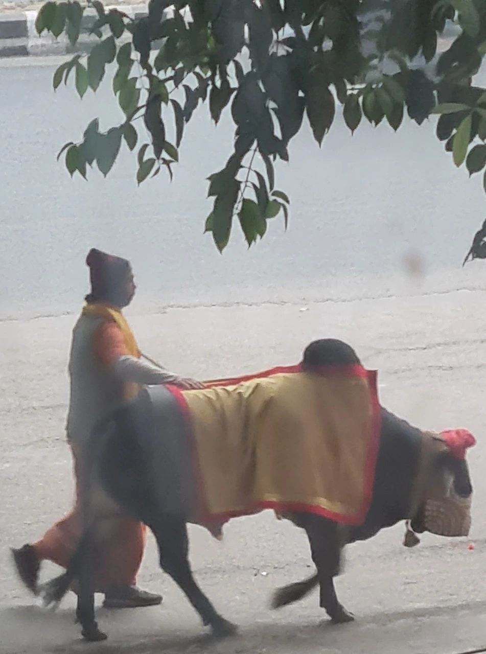 맛있는 아침을 먹고 입구의 신상앞에서 사진을 남겼습니다. 그라운드 플로아에는 제가 좋아하는 파니르(인도 치즈)를 파는 상점이 있습니다. 또 다시 차량운행을 규제했기에 파니르 사러 못갔던 상황이었기에 지인의 차로 와서 살수 있어 좋았네요.