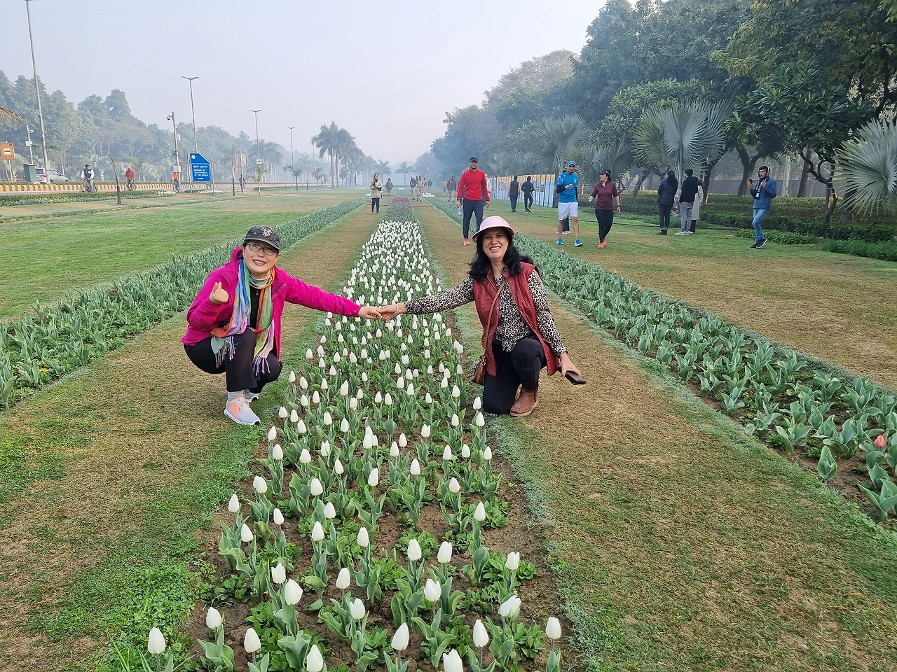 델리에서 제일로 아름다운 샨티 패스, 공항에서 대통령궁까지 이르는 가장 이쁜 도로! 이곳에 네덜란드의 튜울립이 작년부터 자태를 드러내더니 올해는 본격적인 축제 모드이다! 어제부터 축제시작인지라 아직 덜핀 상황이지만 자그마한 꽃들이 뿜어내는 아름다움은 참 대단하였다.