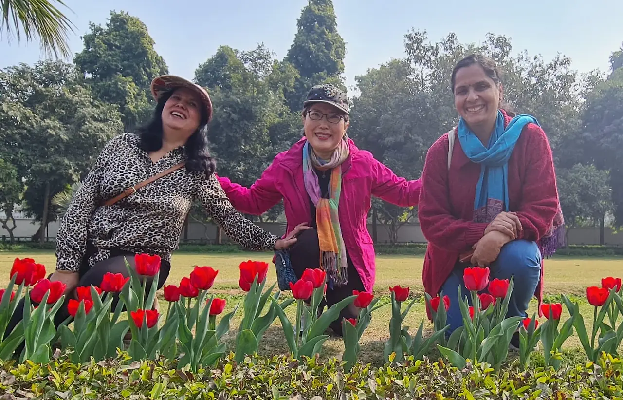 <아프리카 친선 공원>에서 만나기로 했는데 아뿔싸, 도착해서 라다에게 전화하니 아직도 집이란다. 그녀는 약속에 매번 늦게 도착하네... 장미 축제가 한창인 <Africa Friendship Park>를 뒤로하고 샨티 패스의 튜울립 축제의 거리로!!!