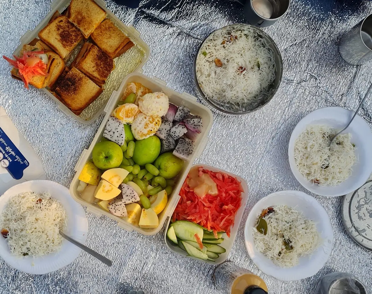 소풍갈 생각에 마음이 싱숭생숭해서인지 새벽 1시에 깨고 하더니 6시에 일어나 준비. 마침 과일이 많아서 이것저것 기쁜 마음으로 준비하고 모짜렐라 치즈 넣은 샌드위치에 오이와 채썬 당근을 따로 준비했다. 같이 넣어 먹으면 좋은데 로미가 무슨 디톡스요법을 받은 이후로 음식이 좀 까다로와졌기에 드레싱이 그녀에게 맞는지 몰랐기에 따로 가져간 것이다.
