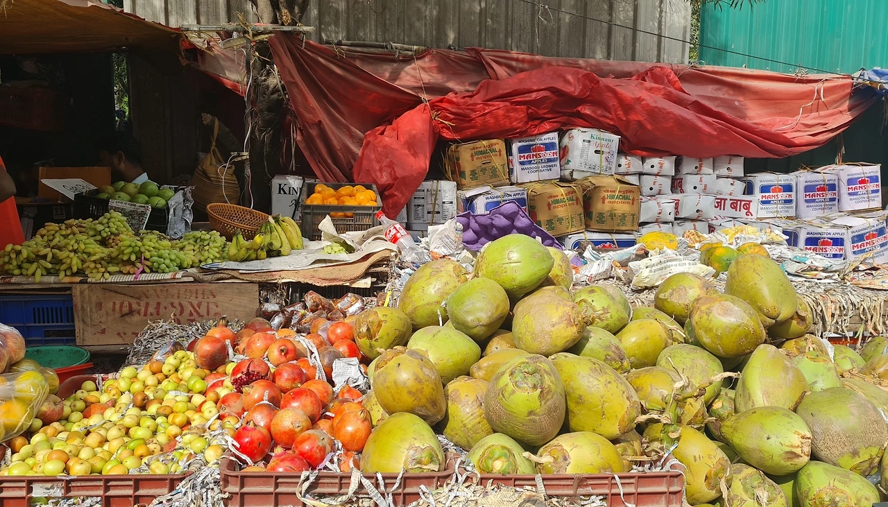 나의 단골 도매 과일상, 앞의 코코넛이 물이 많은 것이 아주 좋았다.