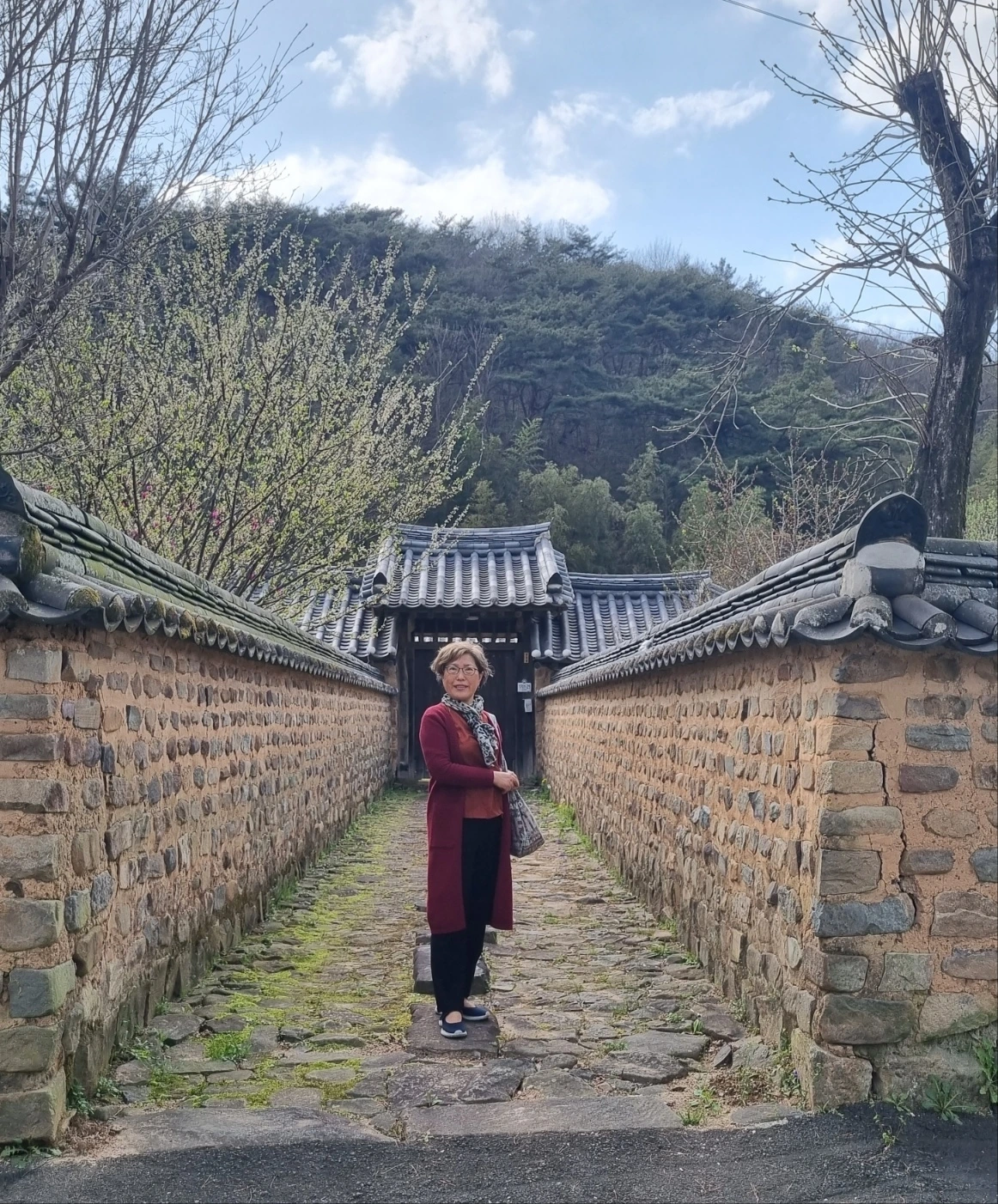 옆집 친척집에 인사차 들르고 솟을 대문 앞에서 사진을 찍고 아들보러 포항가는 길에 올랐습니다.