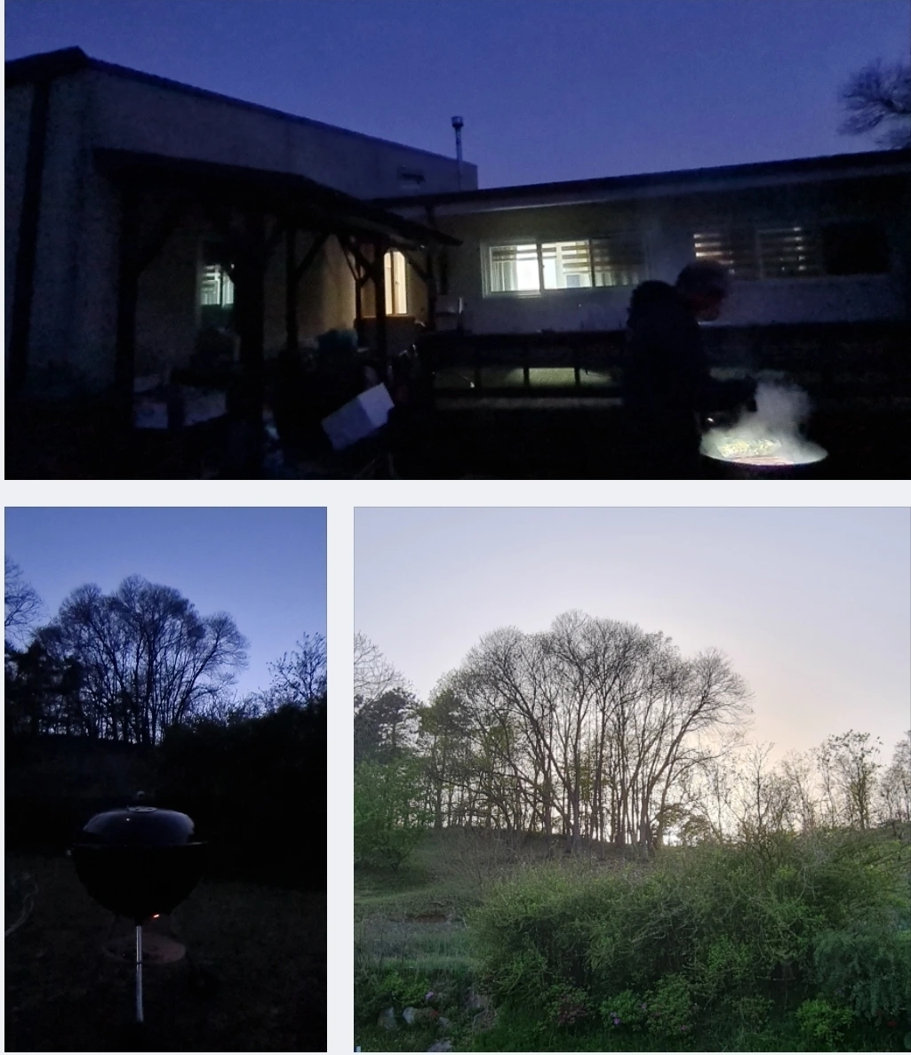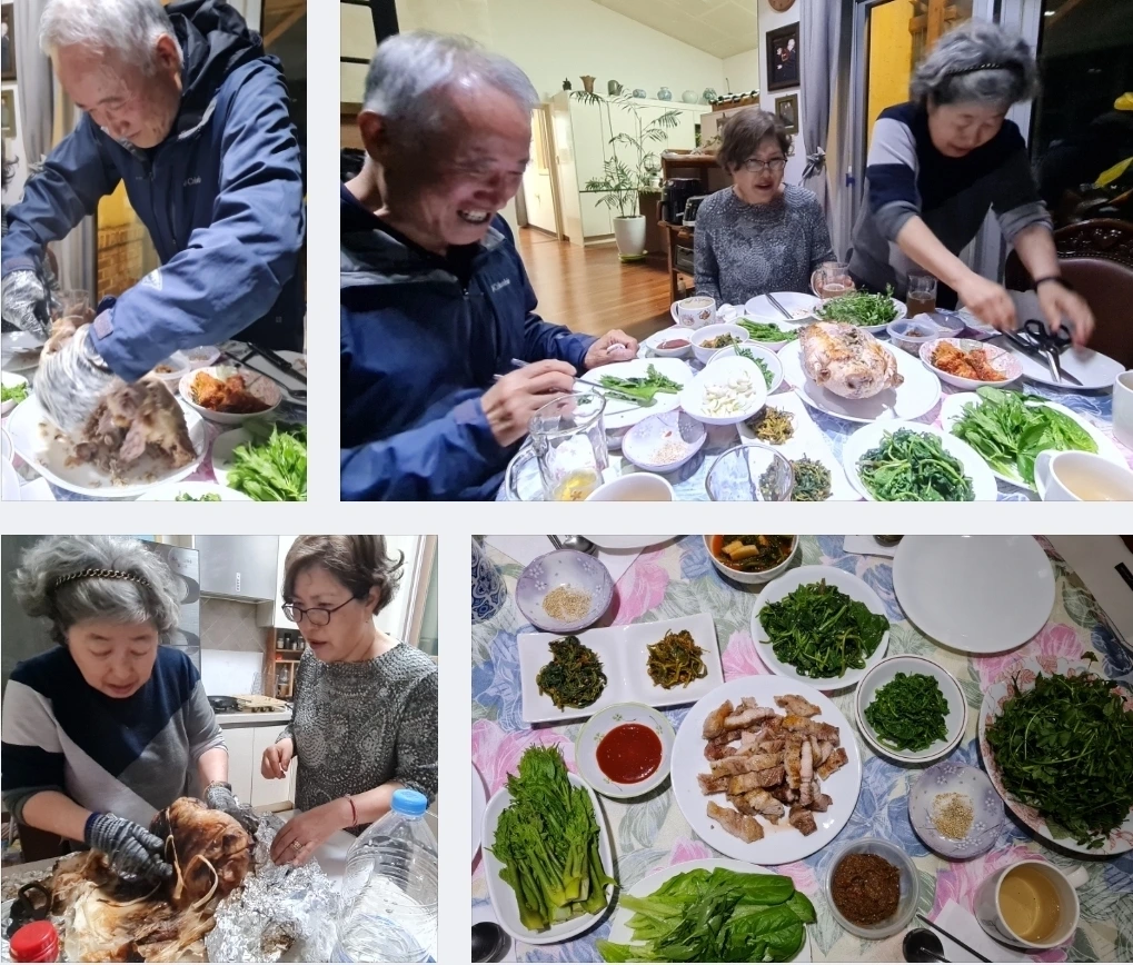 저녁은 특별히 커다란 오리구이와 제주도 흑돼지 삼겹살...구이이다. 그것도 숯불구이라... 별미중의 별미다!