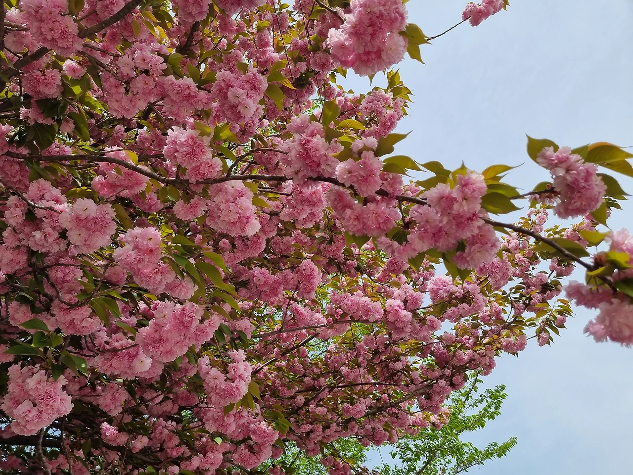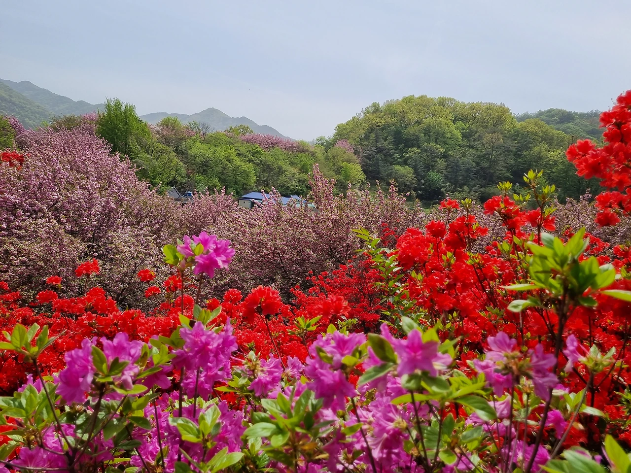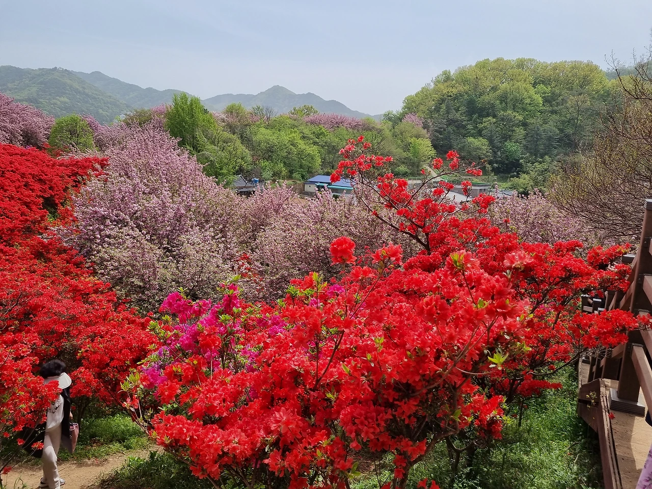 아~ 이 모든 걸 상쇄하고도 남을 대 반전이 있었으니, 바로 가파른 계단을 올라간 뒷산에 겹벚꽃과 철쭉 숲이 있었다. 하늘을 뒤덮는 꽃동산이었다. 우리가 아는 벚꽃은 이제 내년을 기약하고 모두 졌지만, 겹벚꽃은 전주의 한 동산에서 피크를 보여주었다. 이곳 호남지역의 토종나무라고 하는데 줄서서 나아갈 정도로, 사진찍을 만한 괜찮은 곳은 인파들이 몰렸지만 이곳에서는 외국 관광객을 거의 보질 못했다. 아는 사람들만 즐기는 꽃놀이!!! 눈이 행복하고 전주가 사랑스러워지는 순간이었다.