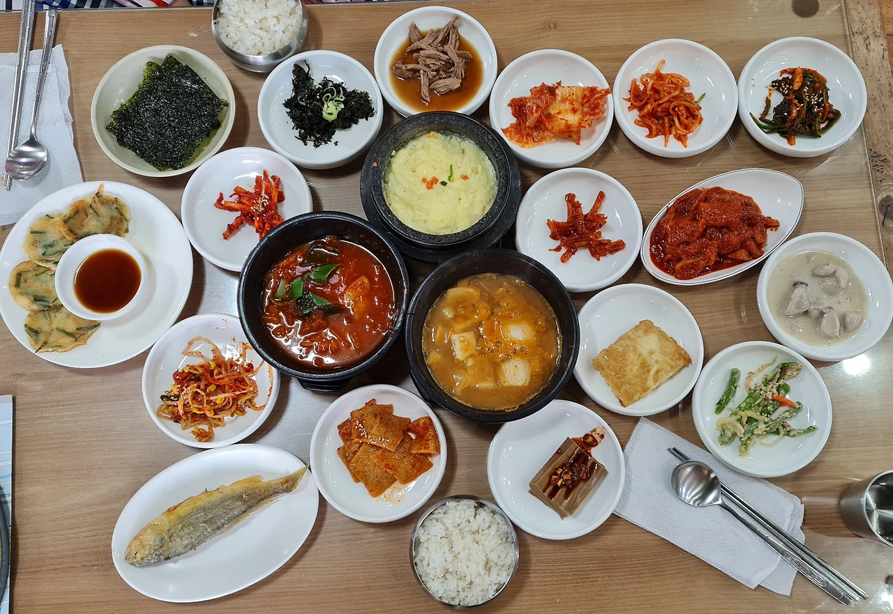 버스를 타고 한옥마을과 성당 앞에서 하차. 한밭식당을 찾았으나 없어졌다고 대신 동네의 숨겨진 맛집이라고 하는 한국식당으로. 인당 만원에 푸짐한 시골 밥상이 차려졌다.