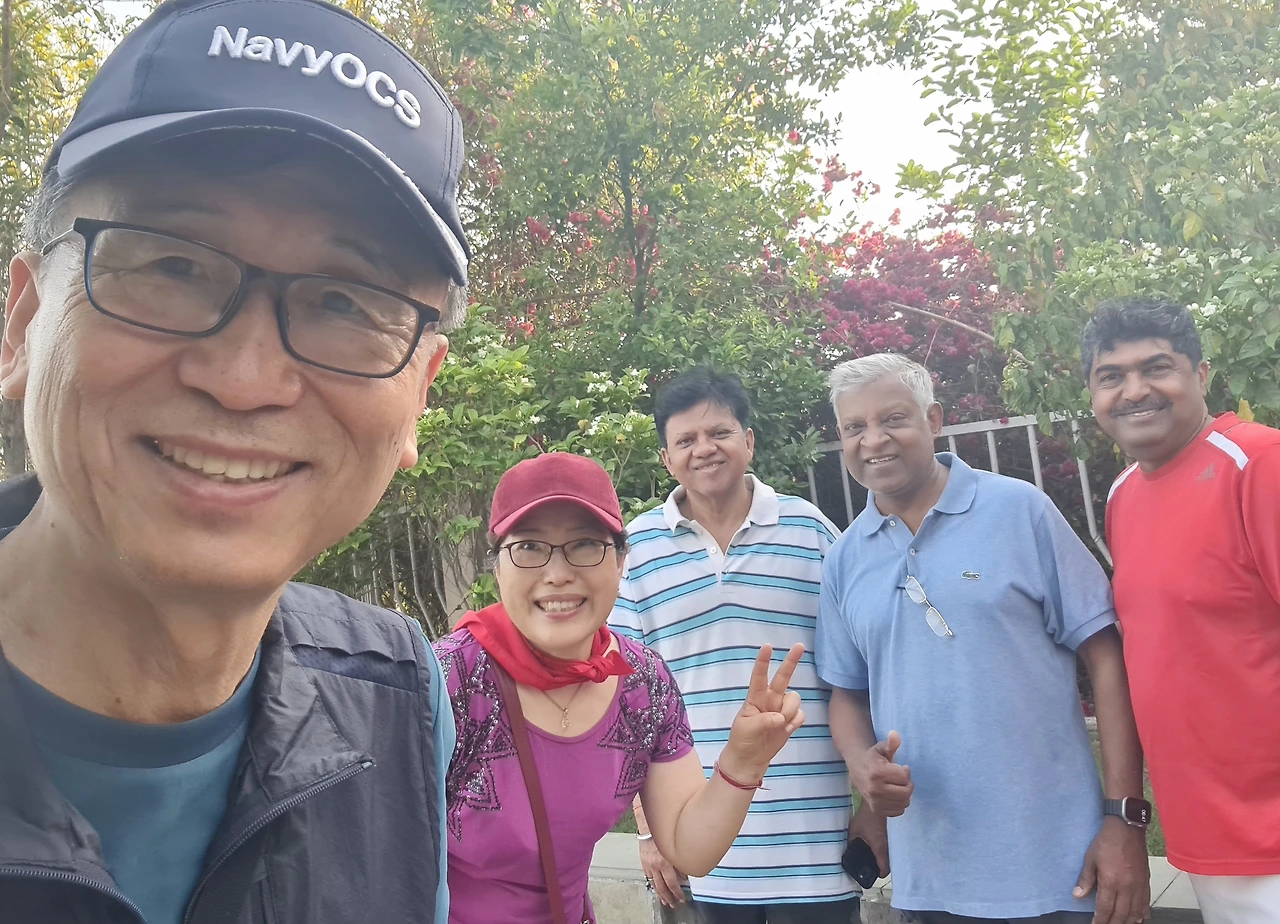 6시반인데 벌써 해가 떳기에 해돋이 동산쪽 말고 걷기를 하였다. 남편의 해군 동기님이 선물로 주신 모자를 쓰고 인증샷 몇개를 남기면서 가다보니 만나는 사람마다 우리의 안부를 묻는다.