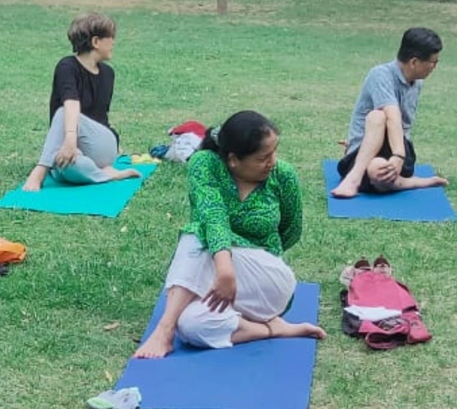 2022년, 8개월 넘게 아침요가를 함께 했던 이웃 커뮤니티 팀이 잊지않고 저희를 초대했습니다. 알피나와 새벽 걷기를 얼른 마치고 나서 6시에 바산트 바티카 공원으로 요가를 하러 갔습니다. 2년만에 만나는 이웃들 반갑고 여전합니다.