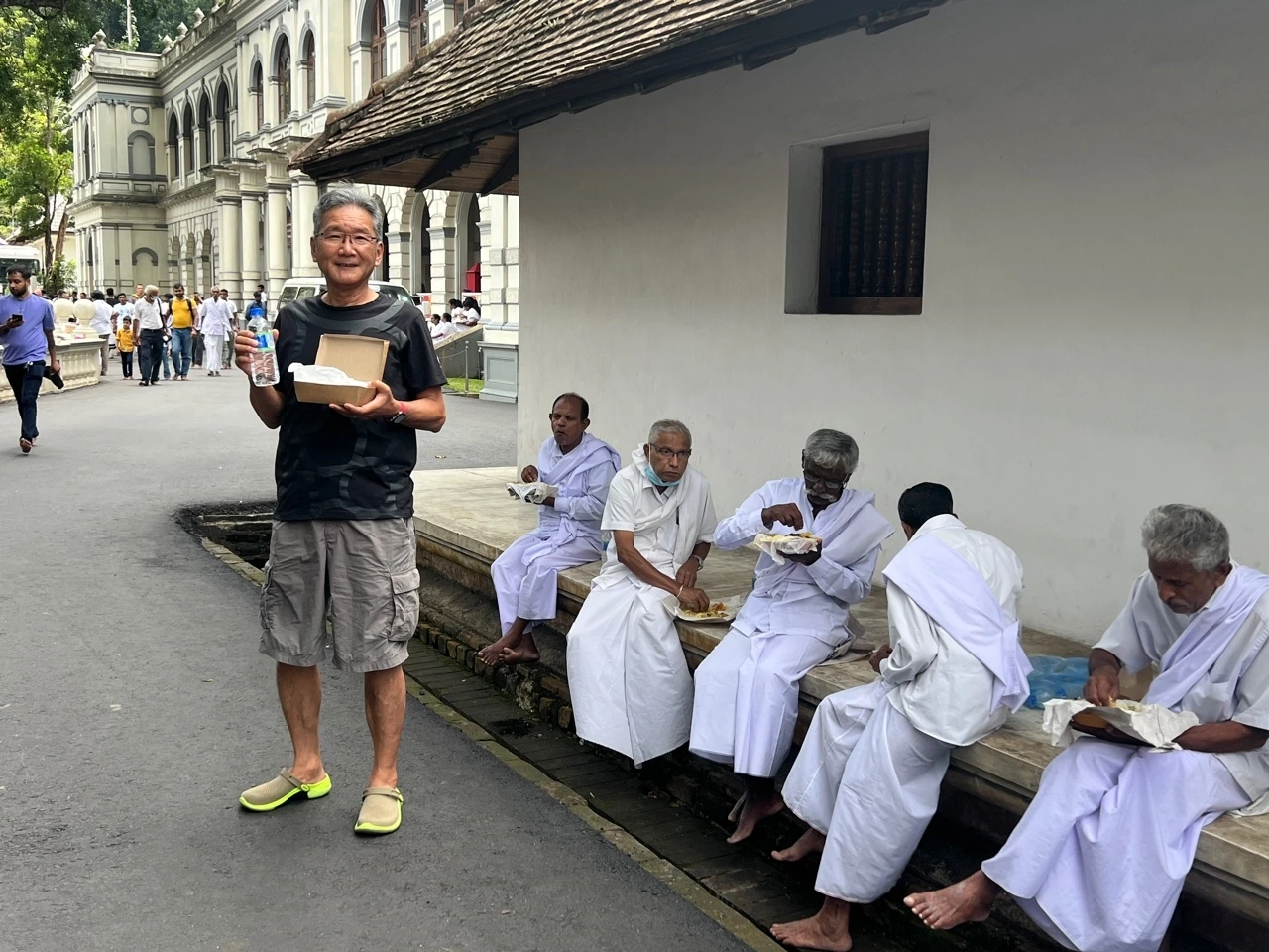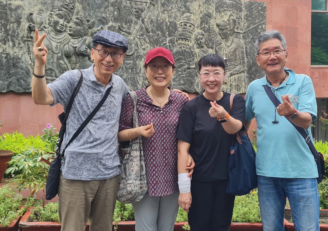 기사를 기다리는 동안 길거리에 쭉 줄을 선 사람들이 무료 급식을 기다리고 있었다. 그런데 휠체어를 탄 사람을 위해 다리가 불편한 사람이 짜파티를 한아름 갖다주는 것이다. 그리고 작은 접시에는 노란 달이 들어있었는데 길거리 보도에 놓으려고 하니 3분의 1은 쏟아져버리고 그래도 거기에 짜파티를 찢어서 적셔서 먹고 있었다. 좁은 보도 블럭 위 옆으로는 사람들이 걸어다니고 있었고... 차까지 들어오니 친구인 다리 불편한 이가 달을 들고 다른쪽 보도블럭 위로 갖다 놓아주고 한 지나던 사람이 휠체어를 이동시켜 주었다...아, 참 몰라도 되는 진솔한 광경을 본 것이었다... 이렇게 사람들은 서로 돕고 살아간다!