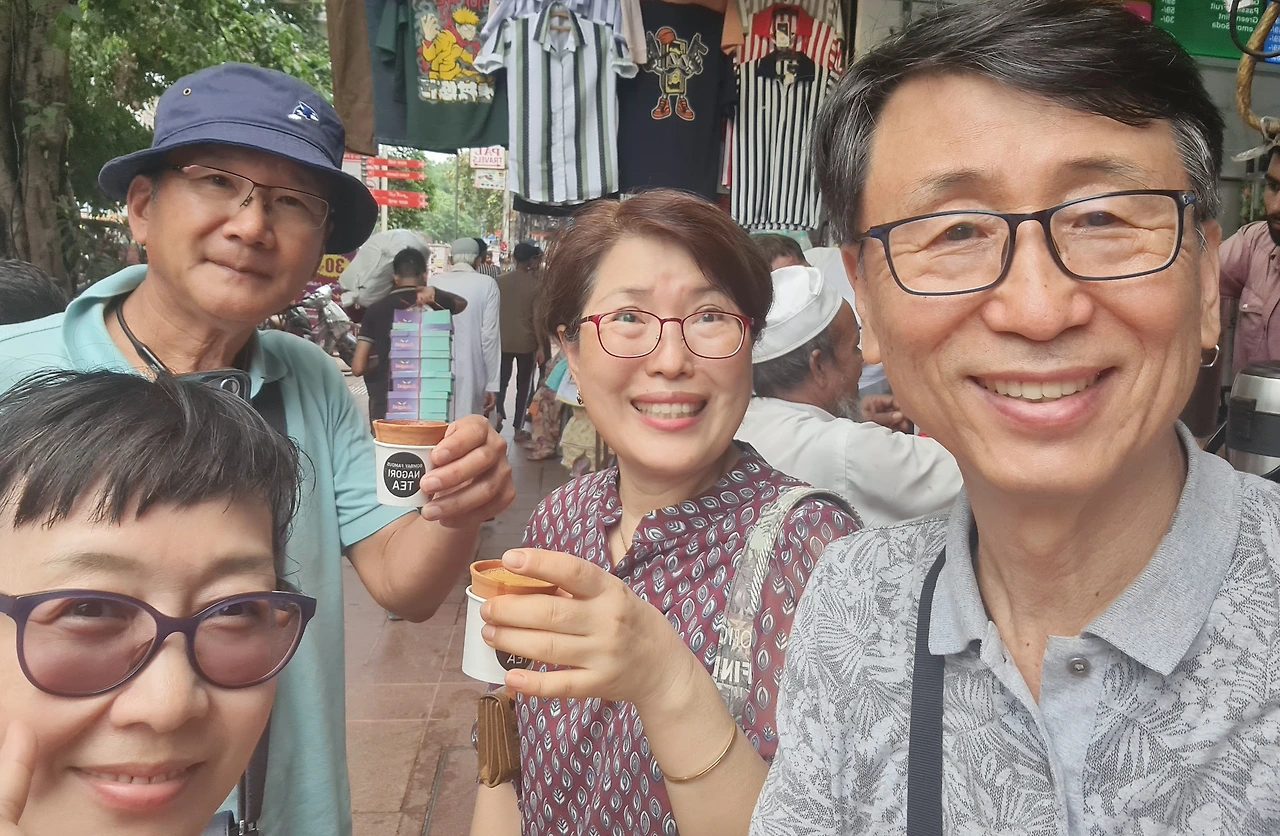 그리고는 맛살라 시장등을 둘러보고자 릭샤를 타기로 했다. 우리가 탄 릭샤운전사는 달변이고 자세히 여기저기 설명을 잘 해 주었다. 나는 큰소리로 영미씨 부부에게 전달하고... 그러다가 200년이 넘었다는 차이 왈라에 들러서 차이 한잔씩 (15루피) 돌리고 바로 옆의 신발가게에서 크록스스타일 신발을 한개씩 샀다. 200루피였는데 영미가 얼른 돈을 내버렸다. 케랄라가서 신으면서 자기 생각하라고...ㅎㅎㅎ 하기사 이번에 올적에 영미씨는 겨울 신발이 편하다고 신고 왔기에 새로산 운동화를 신겨 보냈었다. 케랄라 여행 가서 한번 신었던 것이라서 새것과 다름이 없으니 준 것이었다!