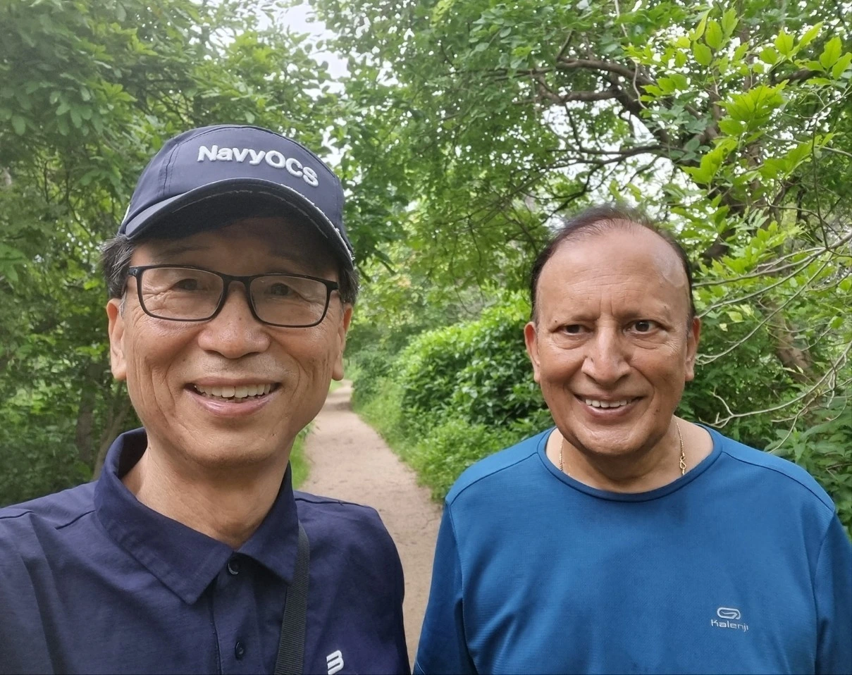 아침걷기에서 빠트릴 수 없는 이웃이십니다. 요즘은 걷기를 예전처럼 매일 하질 못하십니다만 유머가 넘치십니다. 사업체를 아들에게 넘겨준 후로도 회사에 정기적으로 출근하면서 왕성한 활동하십니다. 영국 유학파이십니다. 코로나 팬데믹 때 어디서 구했는지, 유머집과 은근히 재미난 동영상을 지속적으로 보내주면서 지난한 코로나 시절을 함께 이겨냈습니다. 친하지 않고서는 보여주기가 까탈스런 내용물들도 공유하는 허물없는 사이가 되었습니다.^^